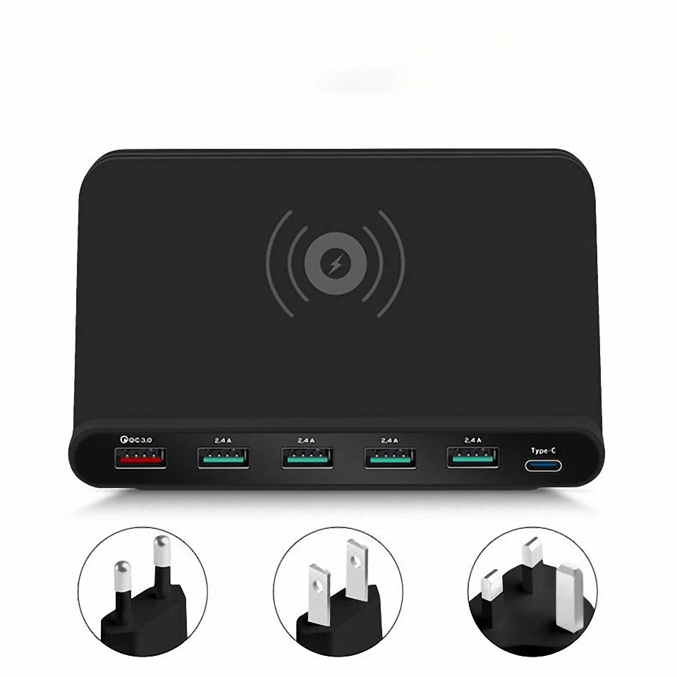 features:100% new high quality goods.rapid charging, rapid port timers 3.0, it allows you to get quick chop on your mobile phone with support for translator 3.0.wireless charger for iphone in the smartphone samsung with function of wireless charging.the output port of the type c for type c for cable data transmission cable transmission type c, type c for the party, the cable transmission type c for micro usb, and much more.5 usb port: it comes with five additional front usb port, which allows you to five devices simultaneously with amazing quick speed. you can also recharge the smartphones, tablets and other devices.a built-in means of protection of recharge, overheating and voltage surges; smart ic - is the world's leading technology to provide the most safe and effective charge; the station обнару жит when your device is fully charged and stops to talk, once the device is loaded completely.simultaneous, rapid charger for iphone 7 devices: 1 timer 3.0 usb quick charger for transfer port.4 standard usb ports with smart ip (integration scheme) интеллигентая (lce) chip technology for all your phones, and other devices, and fed through a usb port: 1 port usb type - c for the chargers usb type c 5 in 1 wireless round the qi that allows fast, беспрово дная charging any phones with support of qi; get rid of the cable leads and stop using all of your wall outlet, when you can put all your devices at oncetravel design, compact and portable design, and 100 to 240 volts ac is ideal for travel all over the world.consistent model of wireless charging: (partial)part of the built-in function qi wireless charging.Для iphone X XR XS max 8 8 Plus.for samsung galaxy note s8 as 9 / 8 / note 7 / note 5 / claims / claims claims the edge / plus / claims / edge / active / s7 s7 s8 / s8 plusPart Nokia Lumia 920 /930 /928 /Lumia Icon (929)/1520 /950 /950XLfor moto droid moto droid turbo, turbo, 1 / 2, motorola moto motorola droid 5 360 smart watchfor lg G6 g2 / g3 / D1L / lte2for htc 8X (uk version) / 8XT / m8 / butterfly (verizon) / the droid dna (verizon) blackberry Z30 (verizon)Sony Xperia Z4v /Z3vДля YotaPhone 2Для huawei mate RS Porsche DesignДля huawei mate 20/20 profor other smartphones with function of wireless charging.technical characteristics:model: многопортовый usb wireless fast chargematerial: plasticentrance: 100 - 240 v ac 50 / 60Hzthe standard usb output: 5 v / 2.4Aeditor / qc 3.0 usb output: 5v, 9v - 2a, 3a, 12V1. 5a.solution the type c: 5 v / 3awireless output power fast charge: 5 w (max)color: black, white (optional)the 13,3x8x7,5 cm (approx.)the type of штекера: штепсельная fork eu / us / uk / au (optional)eu: 150 cm length of cablecable length: 120 cmgreat britain: 120 cm length of cableCable length: 100 mпримечание:1. transition: 1 cm = 10 mm = 0.39 inch2. there are deviations in the 0 - 1 cm of the manual measurement. please make sure that you don't mind, before placing an order.3. because of the difference between different monitors the image may not reflect the actual color products. thank youpackage includes:1 x многопортовое usb charger for fast charge1 x power cable