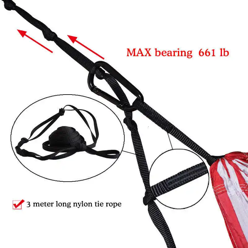 Упаковка: 1 Гамак 2 лямки 3 м каждый 2 карабина