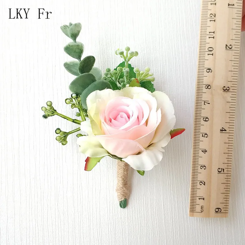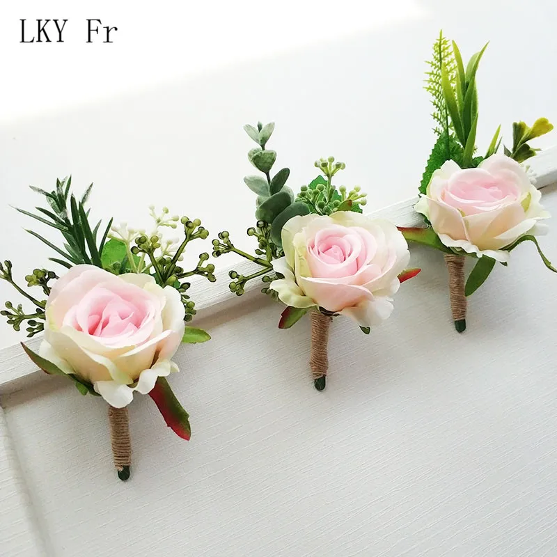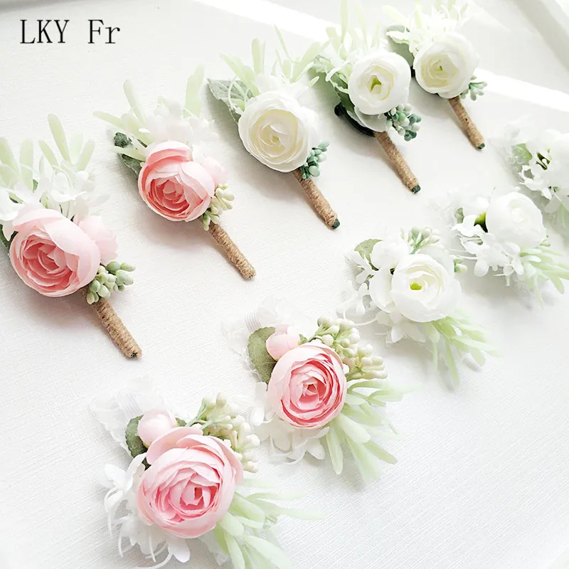 LKY Fr Свадебные бутоньерки корсаж браслет подружки невесты Цветы Браслеты жених бутоньерка Белый Розовый Шелковый цветок наручные корсажи свадебные аксессуары