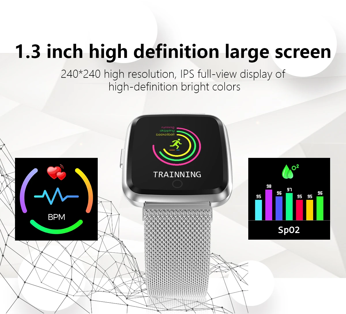 Запись движения (шаг, расстояние, расчет калорий), режим упражнений, толчок сообщения, хранение информации, Мониторинг сердечного ритма, мониторинг сна, измерение артериального давления, измерение насыщения крови кислородом, Секундомер, фотопереключатель, управление музыкой, полный язык текста, 1,3 дюйма дисплей цвета. |