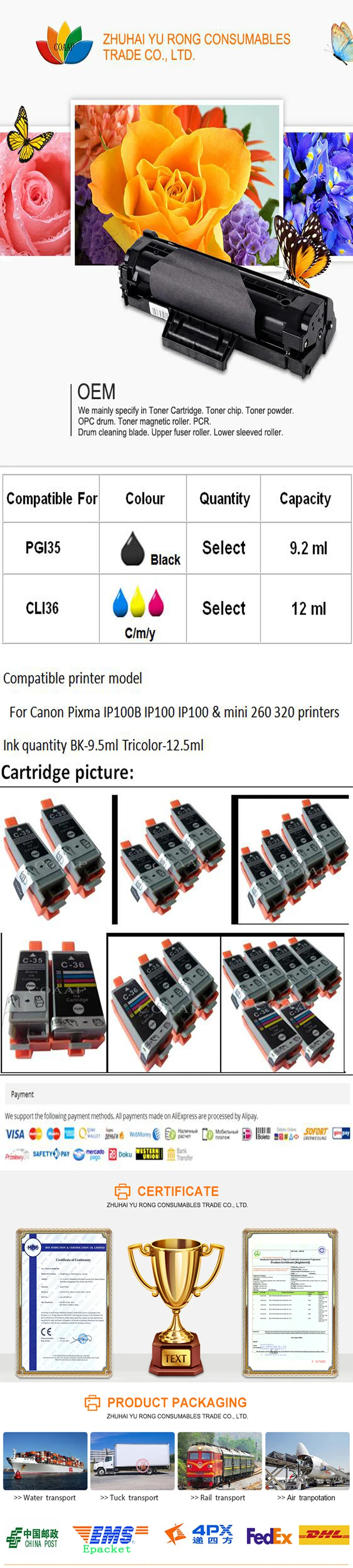 Совместимый C-35 C-36 чернильный картридж для CANON PGI35 CLI36 PIXMA iP100 iP100B, mini 260 320, струйный картридж, бесплатная доставка