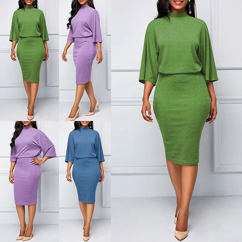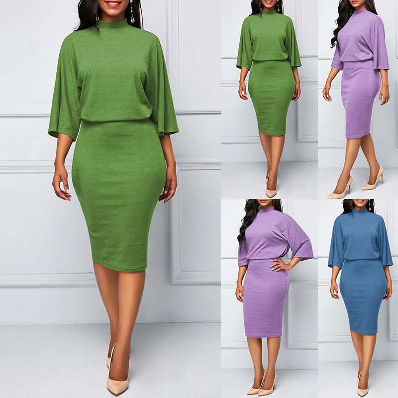 * Описание товара:Круглый вырез, рукав 3/4, сплошной цвет, платье-карандаш