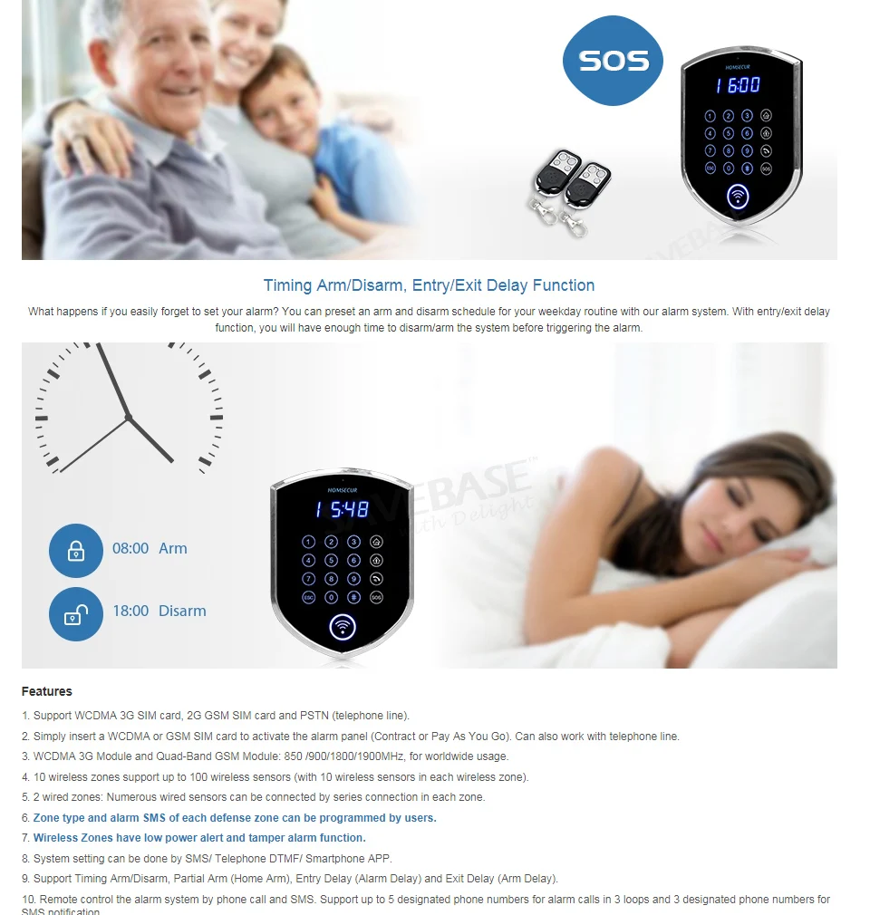 HOMSECUR беспроводный и проводной SMS Autodial YA05 GSM сигнализация 433 МГц Голосовая