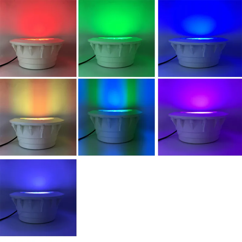Входное напряжение: 12 В AC/DC Светильник источник: SMD 2835 Светодиодный Ватт: 18 Вт/24 Вт/30 Вт/35 Вт/42 Вт Люмен: 18 Вт = 1746лм, 24 Вт = 2328лм, 30 Вт = 2910лм, 35 Вт = 3395лм, 42 Вт = 4074лм Материал корпуса лампы: пластик Размер: d176xh43мм Частота дистанционного управления: 433 Гц Аккумулятор для пульта: 12 В, 23A/27A Класс водонепроницаемости: IP68 (можно положить в воду напрямую). Мощность кабеля: с 1,5 метр Срок службы: 50000 часов Светодиодный Вариант цвета: теплый белый (2700-3500K), чистый белый (5500-6300K), RGB с пультом дистанционного управления, RGB без пульта дистанционного управления (светодиодный внешний контроллер)