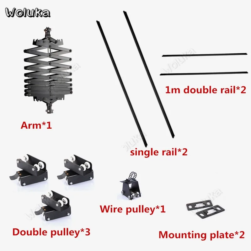 Рука * 12,3 м одинарный рельсовый * 21 м двойной рельс * 2Двойной шкив * 3Проволочный шкив * 1Монтажная пластина * 2Примечание: один шкив и другие аксессуары не включены