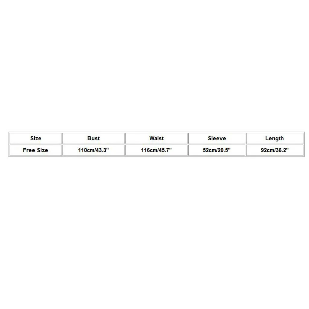 | Размеры: Бесплатные Размеры | Бюст: 110 см/43,3" | Талия: 116 см/45,7" | Длина рукава: 52 см/20,5" | Длина: 92 см/36,2" |