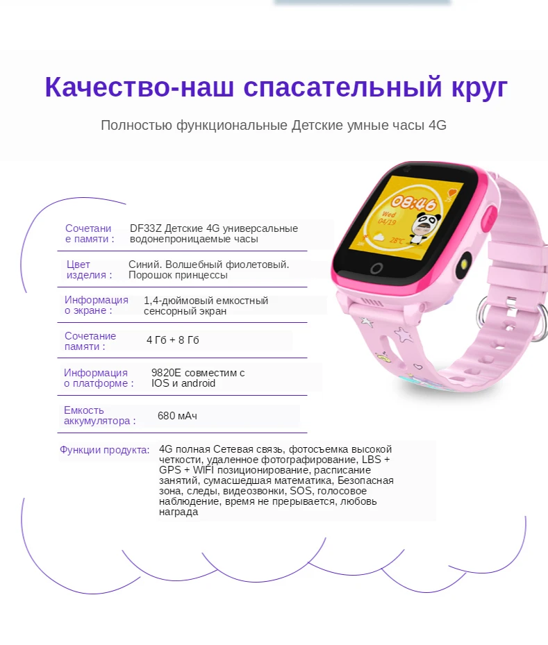 Аппаратная платформа: 9820E Комбинация памяти: 2 ГБ + 4 Гб Аттена FDD: полоса 1 \ 2 \ 3 \ 5 \ 7 \ 8 TDD: полоса 38 \ 39 \ 40 \ 41(100 м); WCDMA: полоса 1 \ 2 \ 5 \ 8 GSM: полоса 2 \ 3 \ 5 \ 8 Разрешение экрана: 240*240 Размер экрана: 1,4 дюйма Сенсорный экран: 1,4 дюйма весь сенсорный экран Емкость аккумулятора: 680 мАч Время работы: 120 часов Время работы: 48 часов Физический ключ: кнопка запуска и выключения, кнопка SOS Громкоговоритель: 1609 громкоговоритель DF33 язык часов: турецкий, русский, китайский, немецкий, испанский, французский, итальянский, польский, португальский, английский. Двигатель: нет Интерфейс зарядки: зажим для зарядки Класс водонепроницаемости: IP67Упаковка Список:
