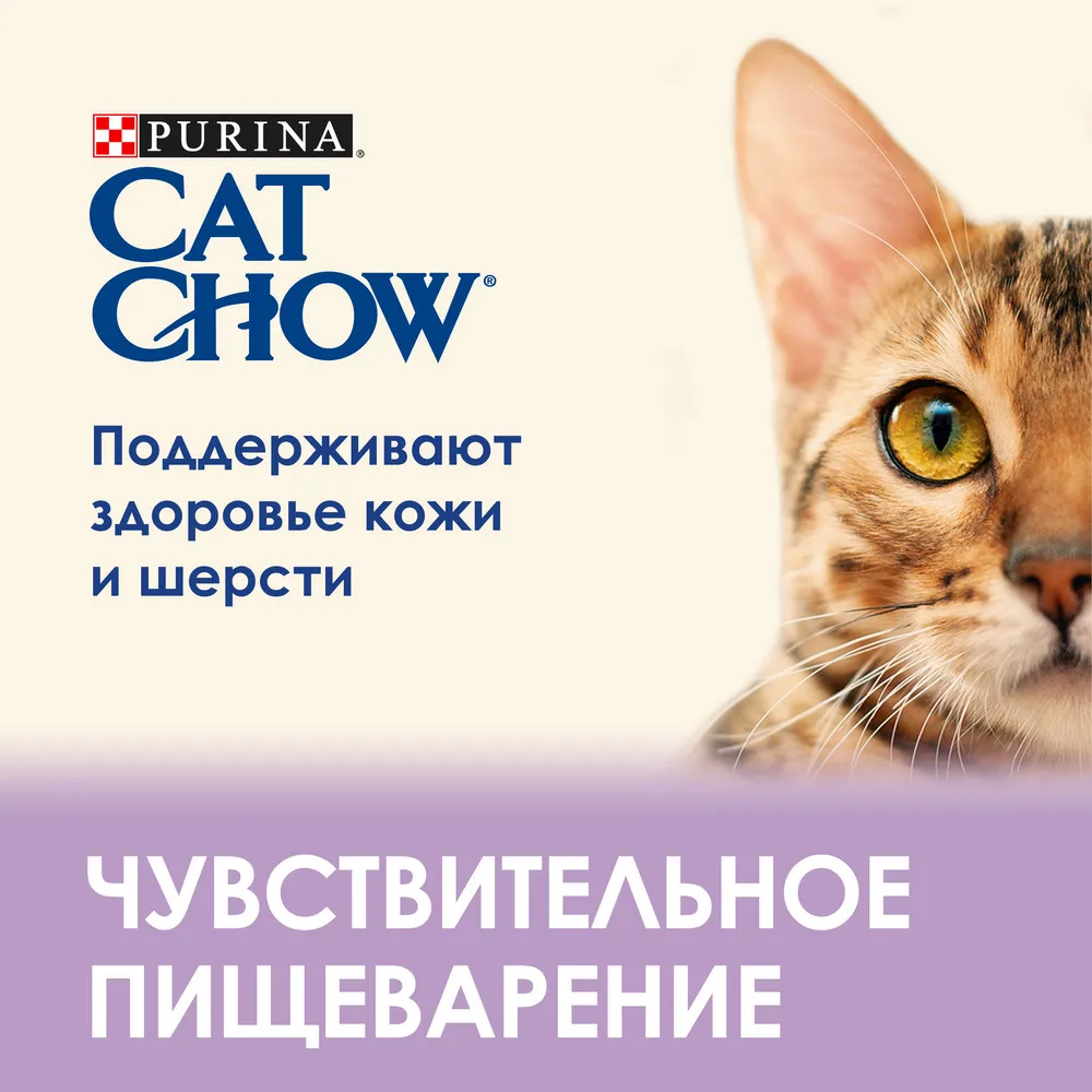 Purina® Cat Chow® (Пурина Кэт Чау) — тщательно разработанный рацион, содержащий белок высокого качества и натуральные ингридиенты, такие как горох, морковь, цельнозерновые злаки, цикорий и дрожжи. Корм Cat Chow® с высоким содержанием домашней птицы. Для удовлетворения естественных потребностей Вашей кошки более 50% белка в корме (от общего количества белка) составляет белок животного происхождения. В составе продукта содержится цикорий - натуральный пребиотик, который доказанно улучшает пищеварение и позволяет Вашей кошке получать больше из своего питания. Основываясь на нашей экспертизе с 1926 года, мы разработали полнорационный сбалансированный корм Cat Chow®, в котором есть все необходимое, чтобы жизнь Вашей кошки была здоровой и естественно прекрасной.