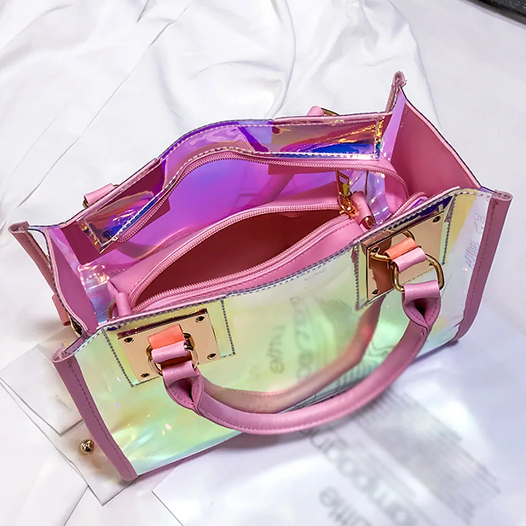 Женская сумка через плечо, 2 шт., модная композитная сумка с лазерным рисунком, новая многофункциональная цветная сумка, вместительная сумка-мессенджер на плечо, 2019
