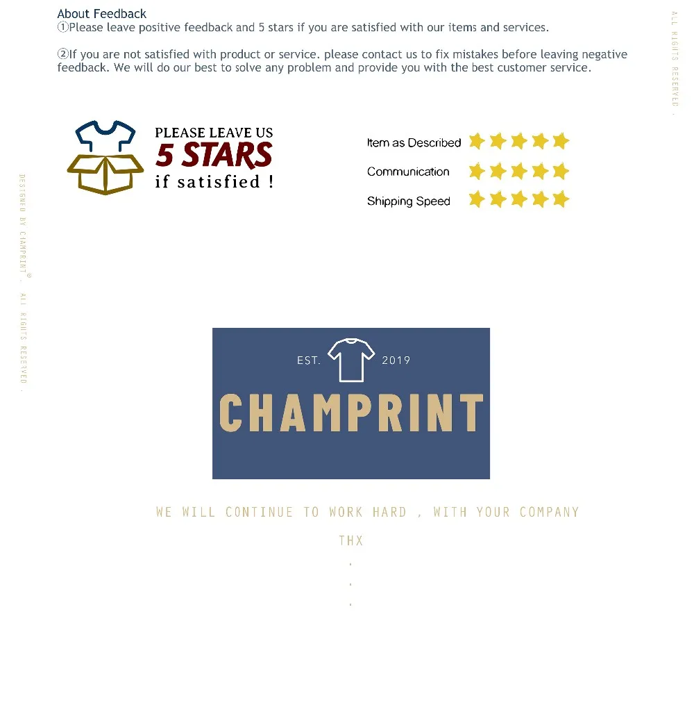 Магазина Champrint Store работает с 18.01.2019. его рейтинг составлет 89.28 баллов из 100. В избранное добавили 6820 покупателя. Средний рейтинг торваров продавца 4.6 в продаже представленно 1965 наименований товаров, успешно доставлено 3389 заказов. 2314 покупателей оставили отзывы о продавце.