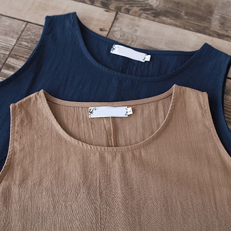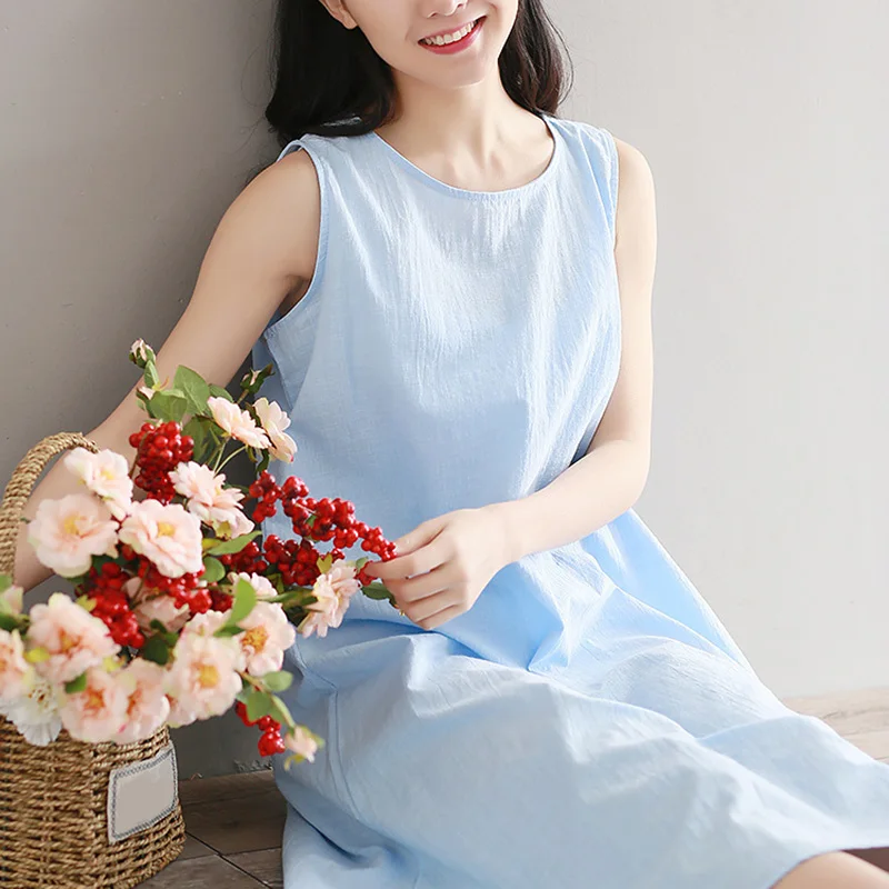 * Item Description:New Summer Women's Loose Sleeveless Mid Dress Vocation Cotton Linen Sundress