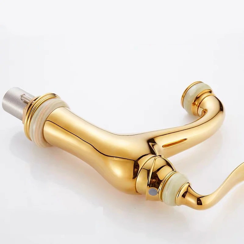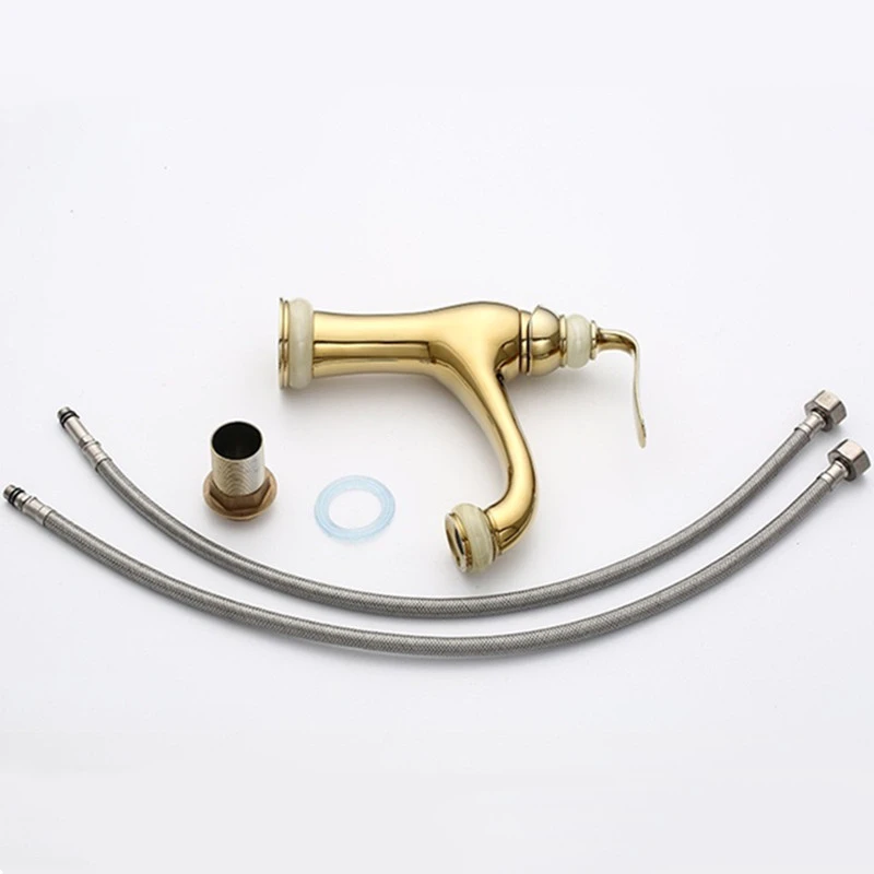 Описание товара Функция: смеситель для раковины в ванной Материал: твердая латунь Отделка: розовое золото/золото С двумя трубами для горячей и холодной воды Количество ручек: 1 Особые особенности; Тихое закрытие, простота установки