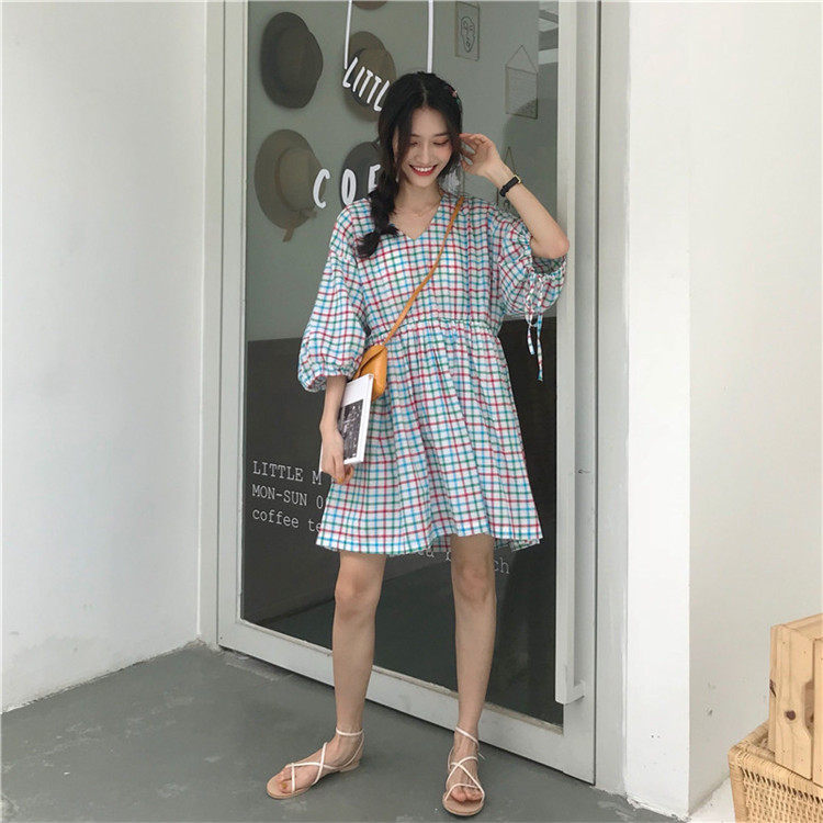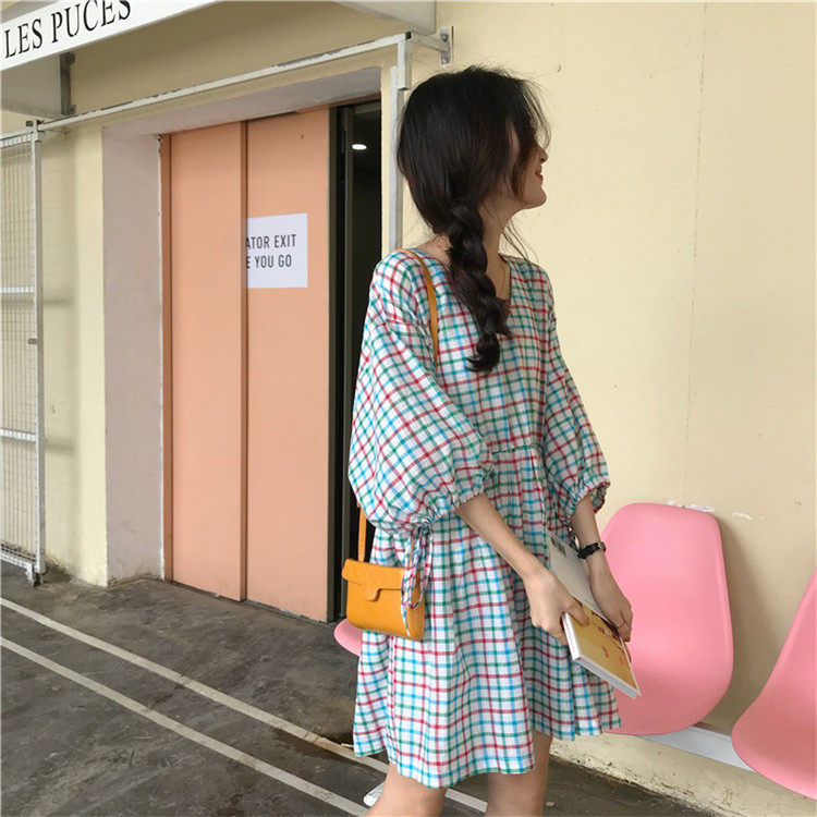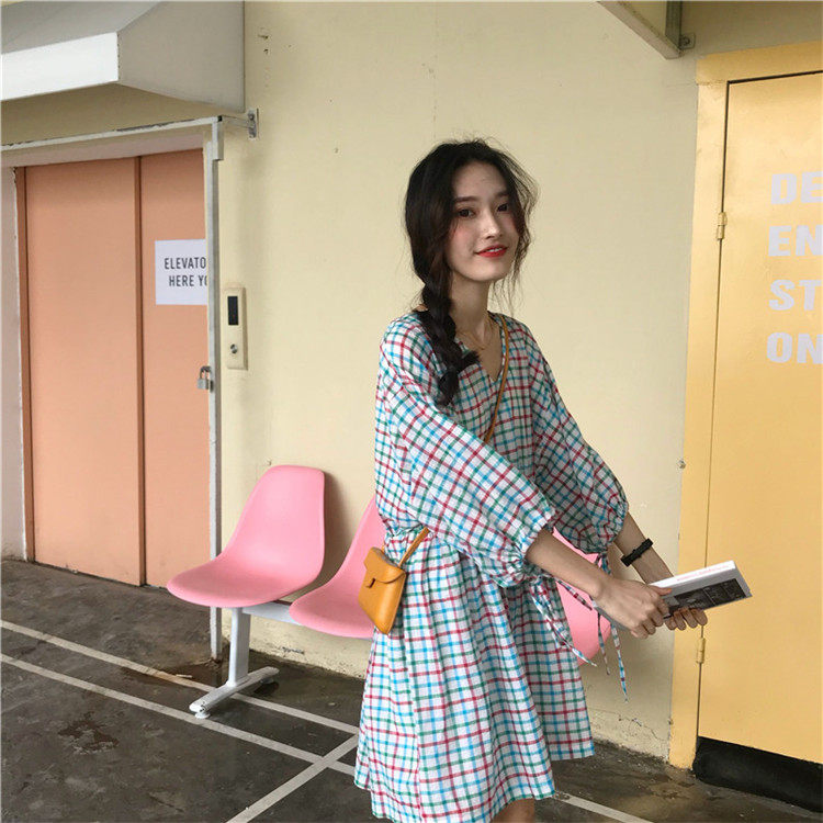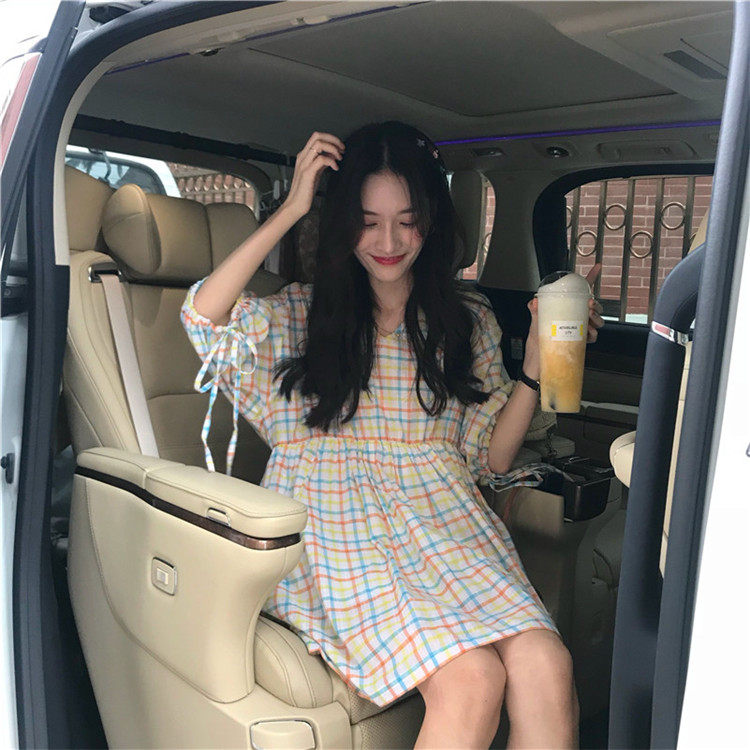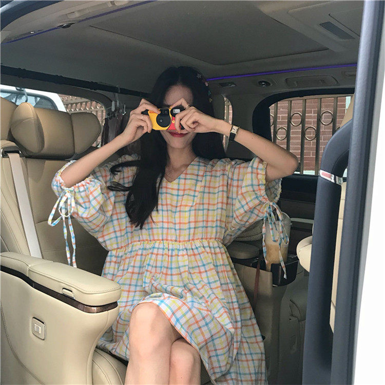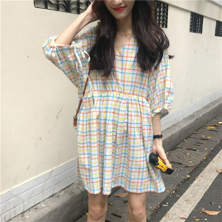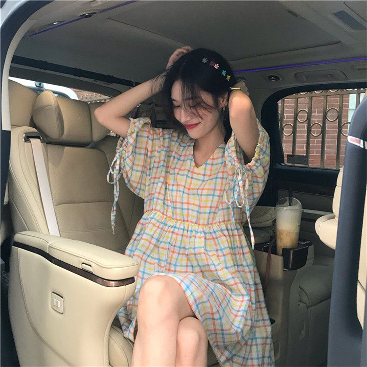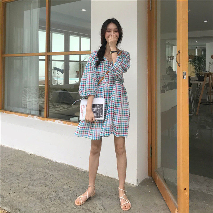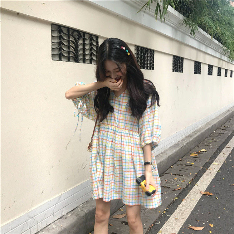2 цвета, Летнее мини-платье 2019, корейский стиль, цветные клетчатые платья с коротким рукавом для женщин