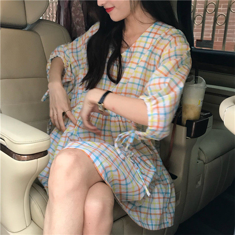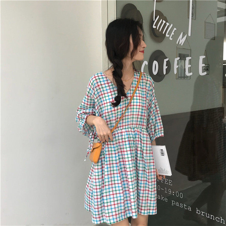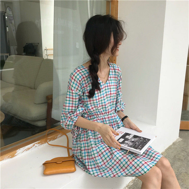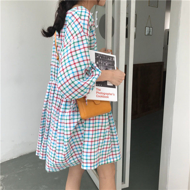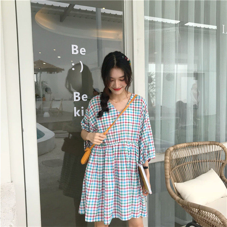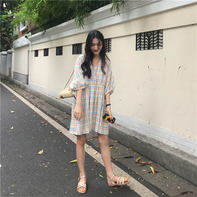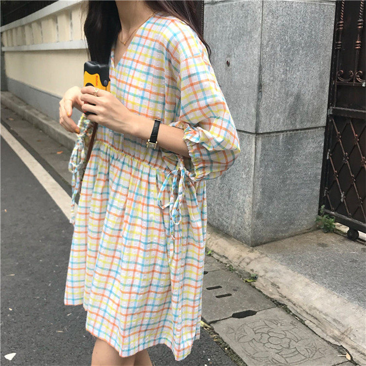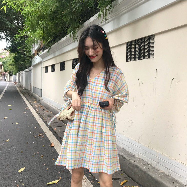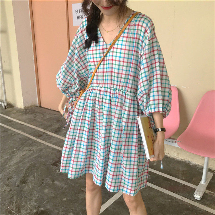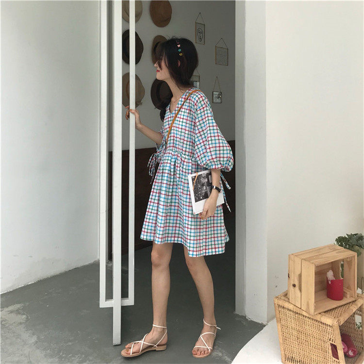 2 цвета, Летнее мини-платье 2019, корейский стиль, цветные клетчатые платья с коротким рукавом для женщин