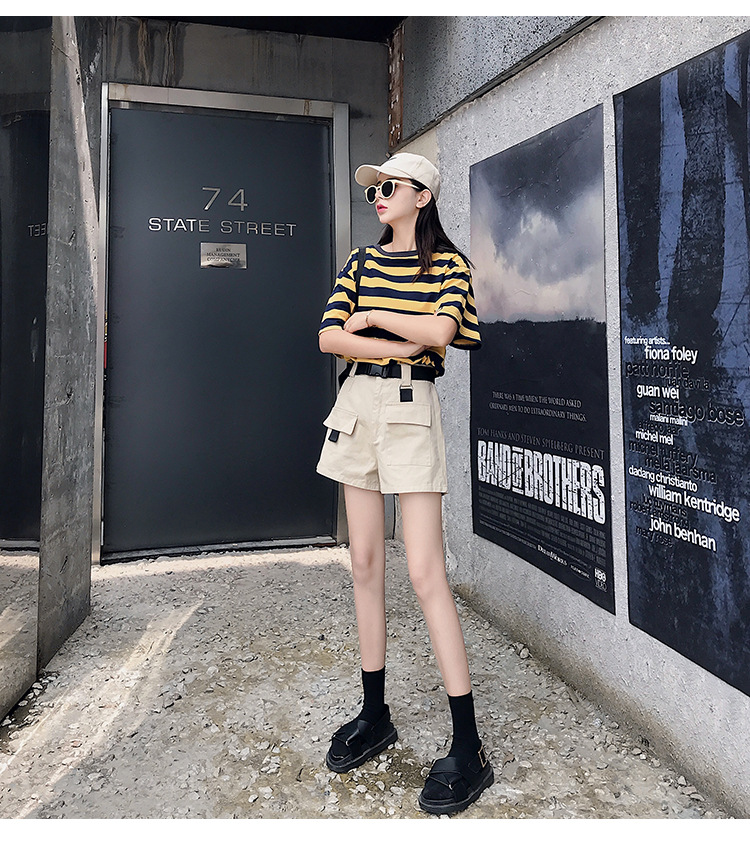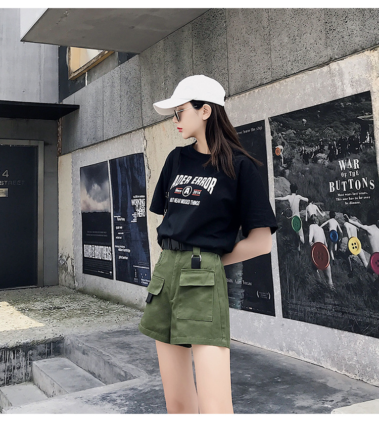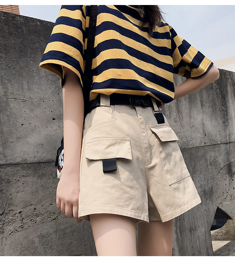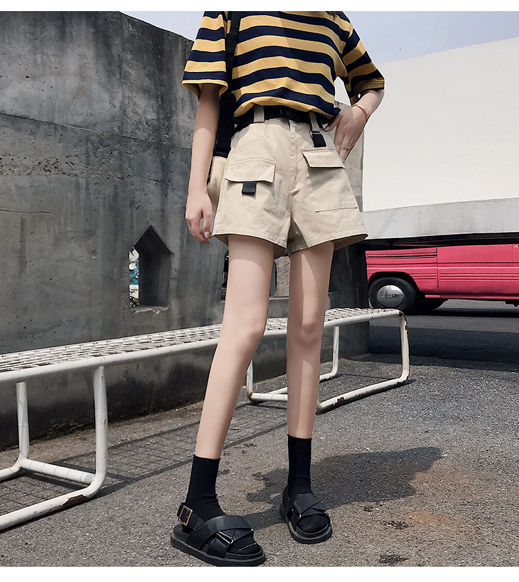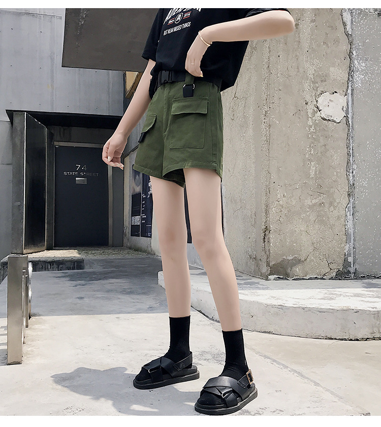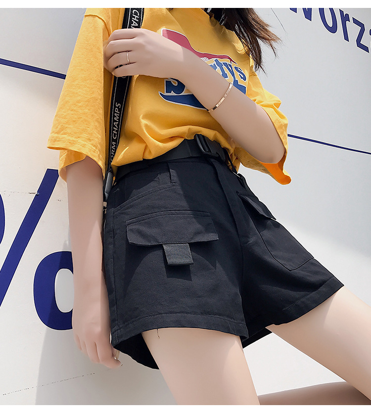 Женские шорты с высокой талией, винтажные однотонные шорты-карго с широкими штанинами и карманами, PT204, лето 2019