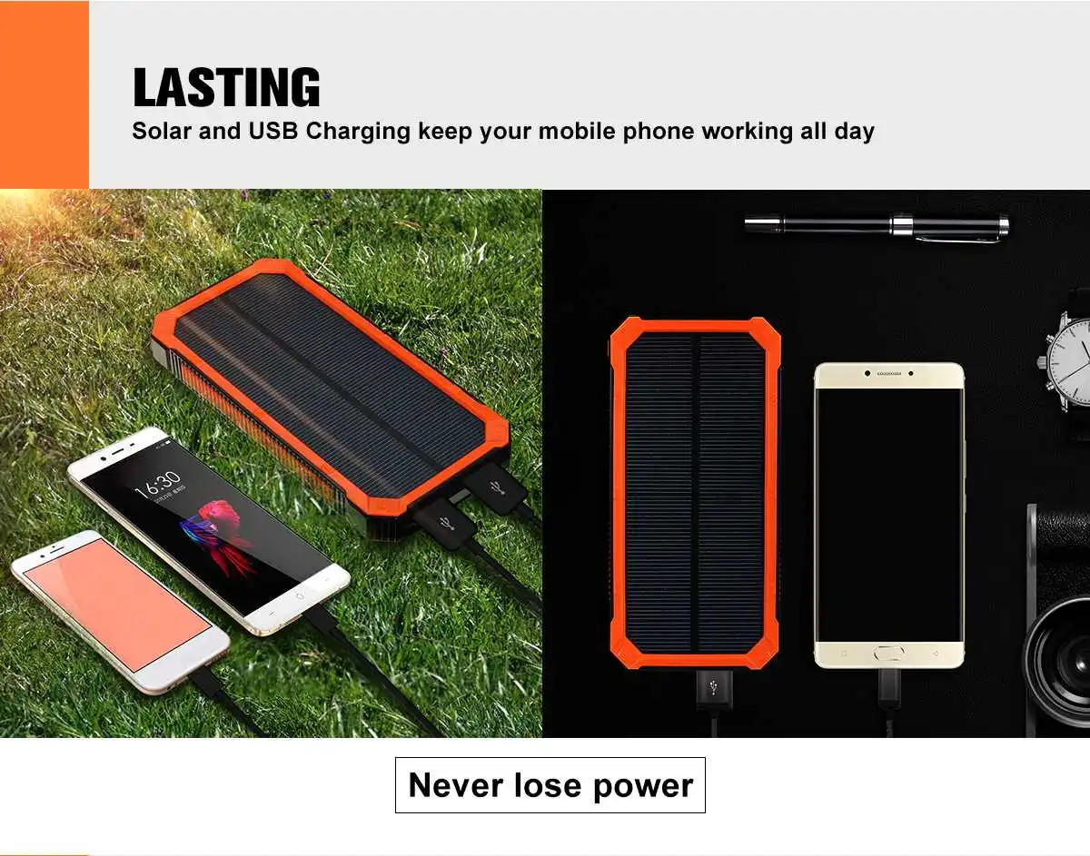 Особенности: -Встроенные высококачественные экологически чистые литий-ионные аккумуляторы с большой емкостью и высоким коэффициентом конверсии 88% в среднем. -Длительный срок службы с около 300 раз зарядки и отключения. -С солнечными панелями на верхней стороне, он может поглощать солнечную энергию в электричество. -Светодиодный светильник для экстренного использования, просто дважды нажмите кнопку питания, чтобы включить его. -С двойным выходным интерфейсом USB, который одновременно заряжает 2 мобильный телефон, и порт зарядки является водонепроницаемым и пыленепроницаемым. -С карабином, поэтому он переносится на открытом воздухе, и он заряжается в любое время, когда есть солнечный свет. -Широкая применимость, очень проста в использовании как обычный внешний аккумулятор, он может быть применен к большинству электронных устройств, таких как смартфон, КПК, цифровая камера, MP3, игровые консоли, таким образом, это хороший стоячий источник питания при дальнем путешествии. Как использовать? -Солнечное зарядное устройство, поместите его под солнце, и он будет заряжен. -Подключите его к usb-кабелю с usb-портом для зарядки 5 В на адаптере, компьютере или других устройствах. -Указывающий светильник будет включен, когда он будет полностью заряжен. Меры предосторожности: -Когда вы используете его в первый раз, пожалуйста, получите его полностью заряжен, чтобы получить лучший срок службы батарей. -Когда индикатор батареи выключается при зарядке других устройств, это означает, что вы должны зарядить Банк питания, требующий своевременной зарядки. -При использовании, пожалуйста, включите экран электронного устройства убедитесь, что флаг подключения к зарядке отображается правильно, что обеспечивает нормальную работу. Технические характеристики: -Название продукта: солнечная энергия -Материал: Пластик -Цвет: черный, оранжевый, зеленый, желтый -Размер: прибл. 16x7.5x1.5 см/6,29 "x 2,95" x 0,59" -Тип батарей: литий-ионные полимерные батареи -Вход USB: 5 В -Выход USB: USB1: DC 5V 1A, USB2: DC 5V 2A -Мощность: 300000 мАч Посылка включает в себя: 1x Солнечный Мощность 1x Карабин 1x USB кабель 1x Руководство пользователя 1x коробка |
