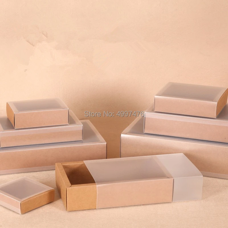 20 шт., Пользовательский логотип ящик Подарочная коробка крафт-бумага раздвижные коробки складные ящики для хранения картонный контейнер с матовой ПВХ крышкой