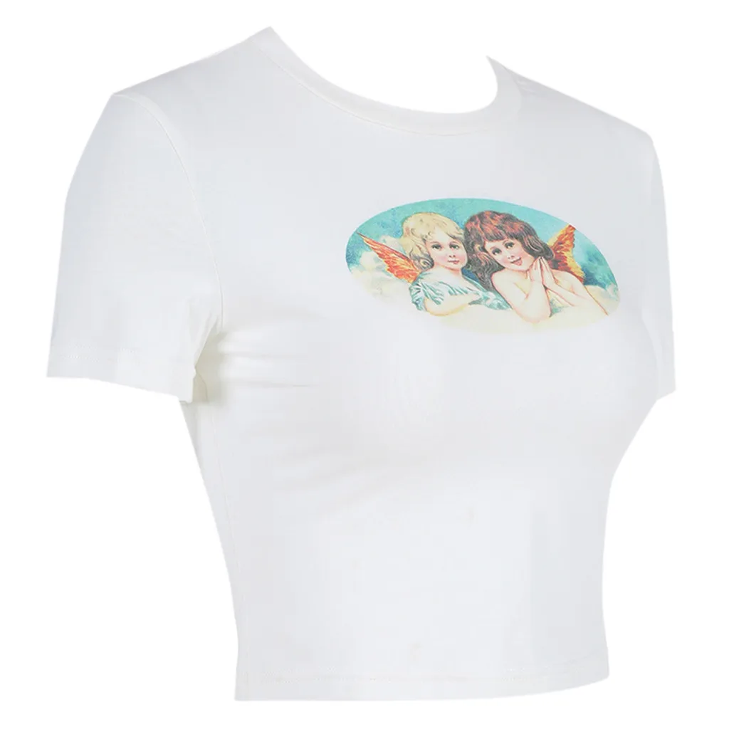 Женский модный Повседневный короткий рукав высокий завернутый воротник с принтом Короткие топы Футболка Блузка
