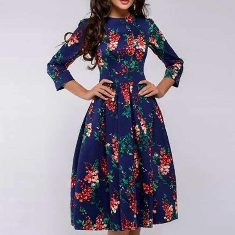 * Описание товара: женское сексуальное платье с цветочным принтом, круглым вырезом, рукавом три четверти