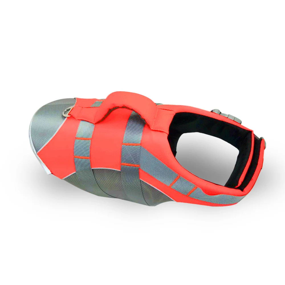 Регулируемый спасательный жилет для собак, разработанный с верхней полоской для легкого спасения вручную или крючком для лодки в воде.