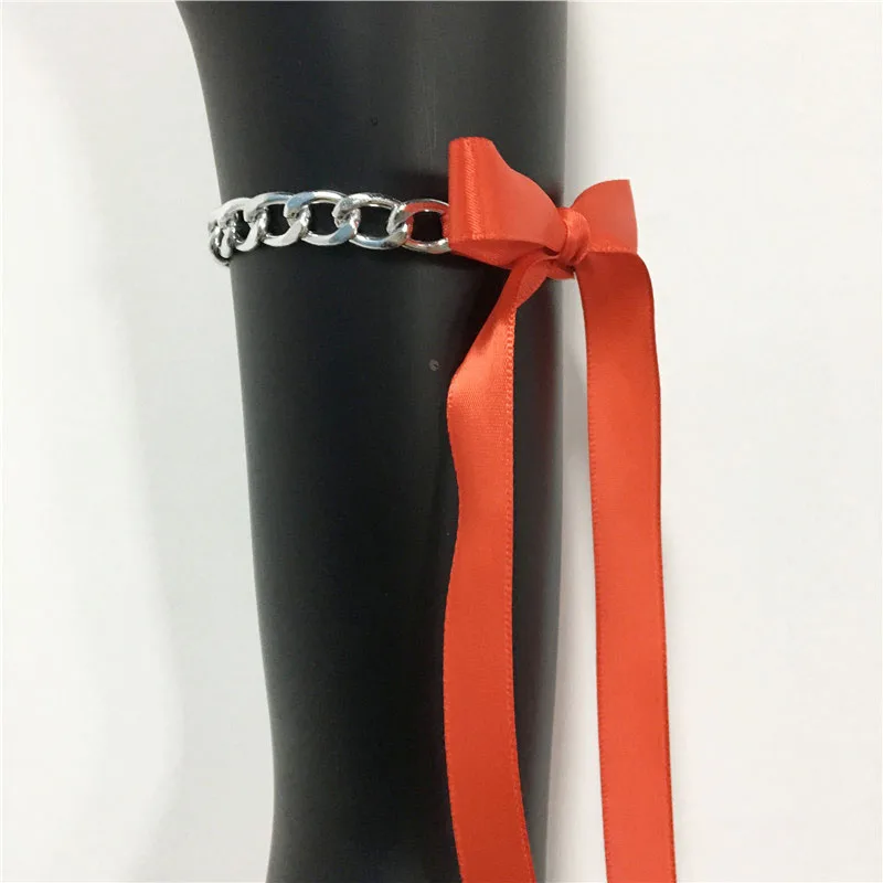 2 PCS Fashion Anklets for Women Metal Chain Ribbon Anklets Foot Jewelry