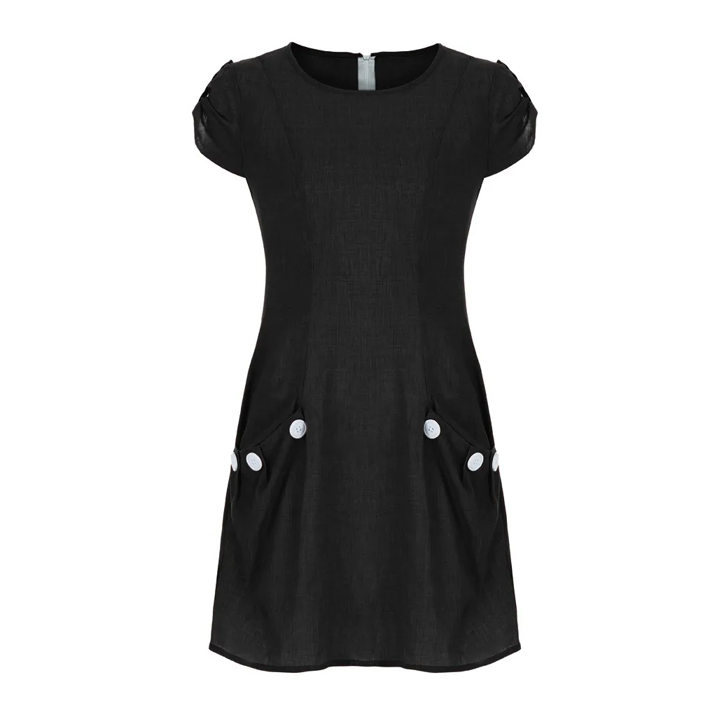 Женские повседневные однотонные плиссированные карманы с o-образным вырезом повседневные платья с пуговицами
