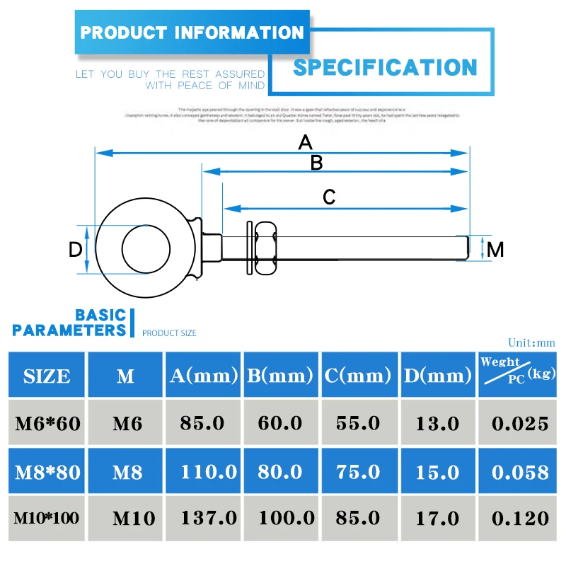 Материал: нержавеющая сталь 316 Поверхность: высокополированное Размеры: M6 M8 M10