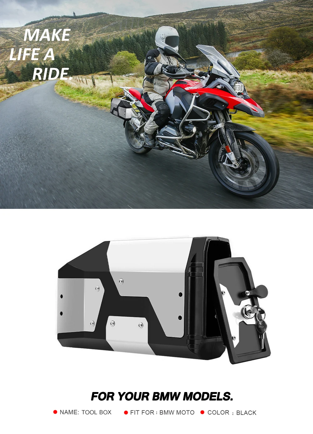 * Ящик для инструментов является идеальным решением для безопасного хранения важных мелких деталей на мотоцикле BWM. Оптимальное использование места на транспортном средстве, аптечке, наборе поломок или многих других полезных вещей остается постоянным и не мешает мотоциклу. Они всегда под рукой, даже если сумок нет.