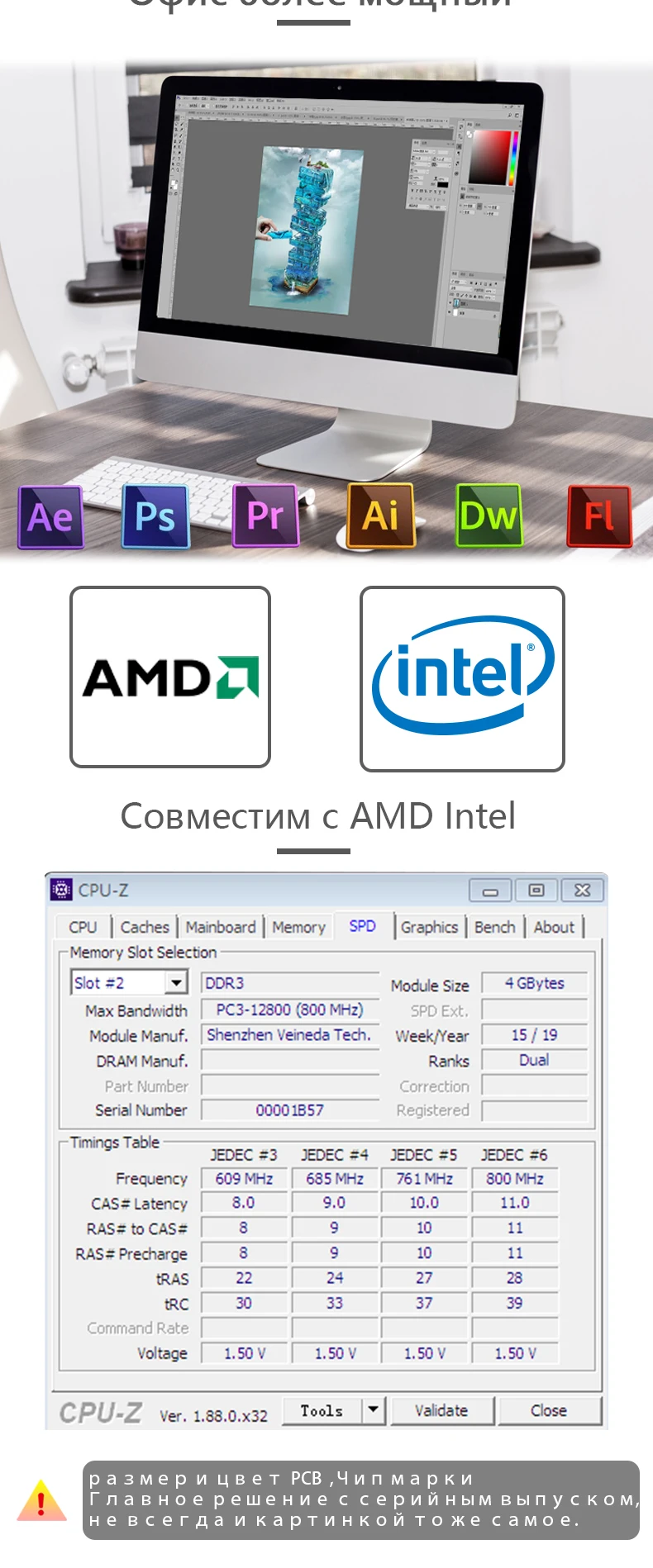 Мы прошли тщательное тестирование перед отправкой. И тщательно очистите пыль, другие этикетки и наклейки. 4 Гб DDR3 не поддерживает Материнские платы серии Intel 4, такие как G41,G43,P43,P45 Chipet
