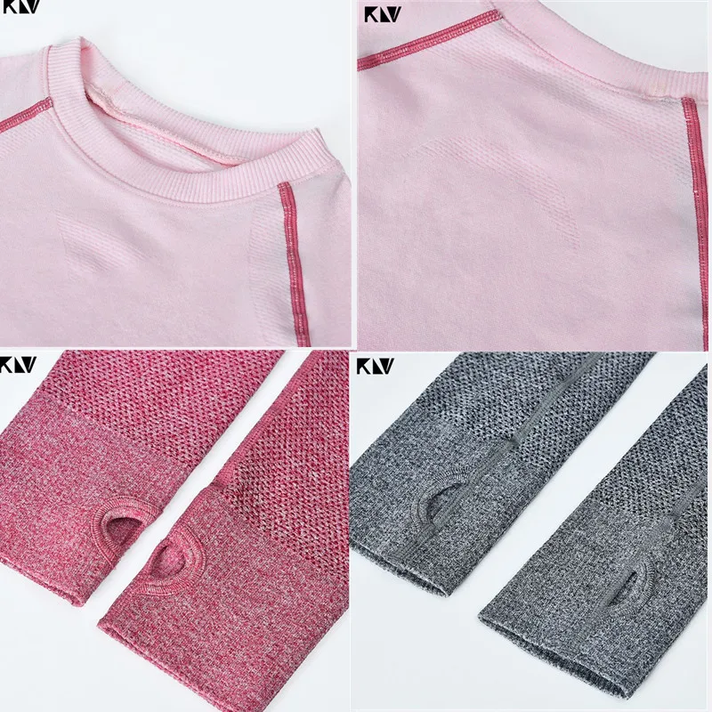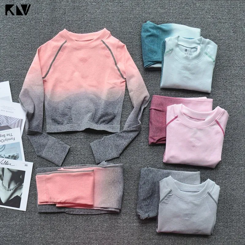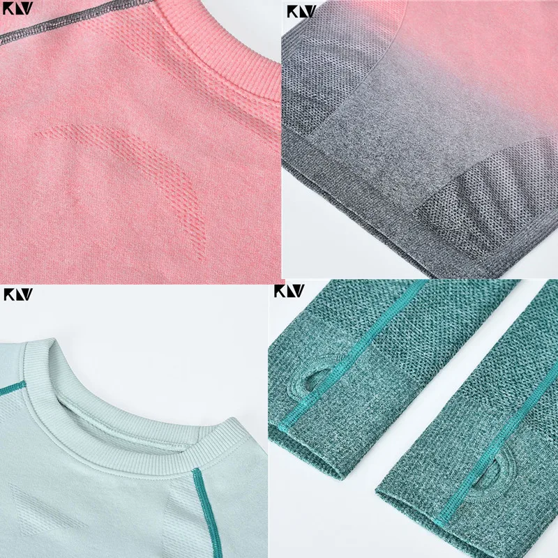 KLV Женский комплект из двух частей Фитнес Леггинсы Ombre бесшовный укороченный топы
