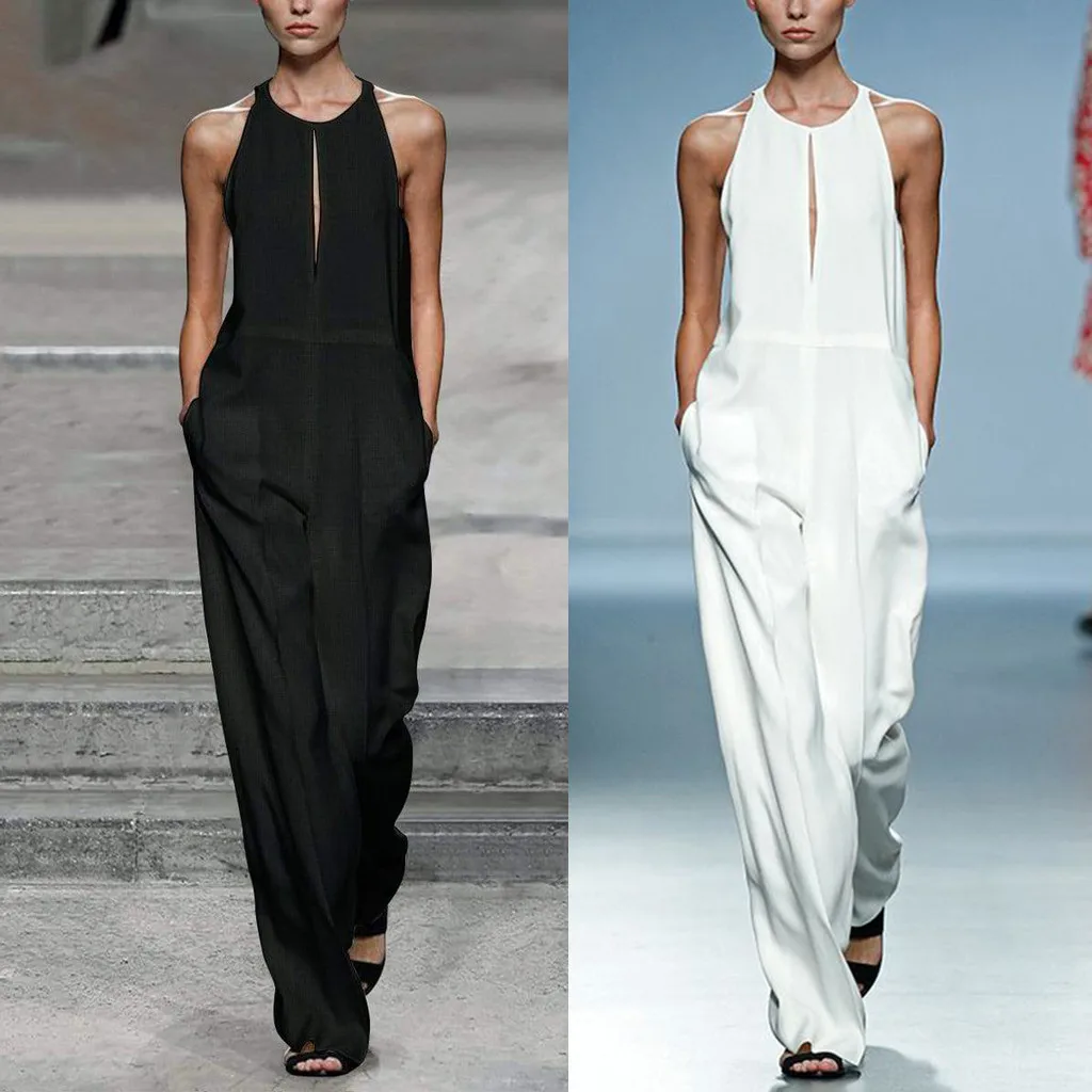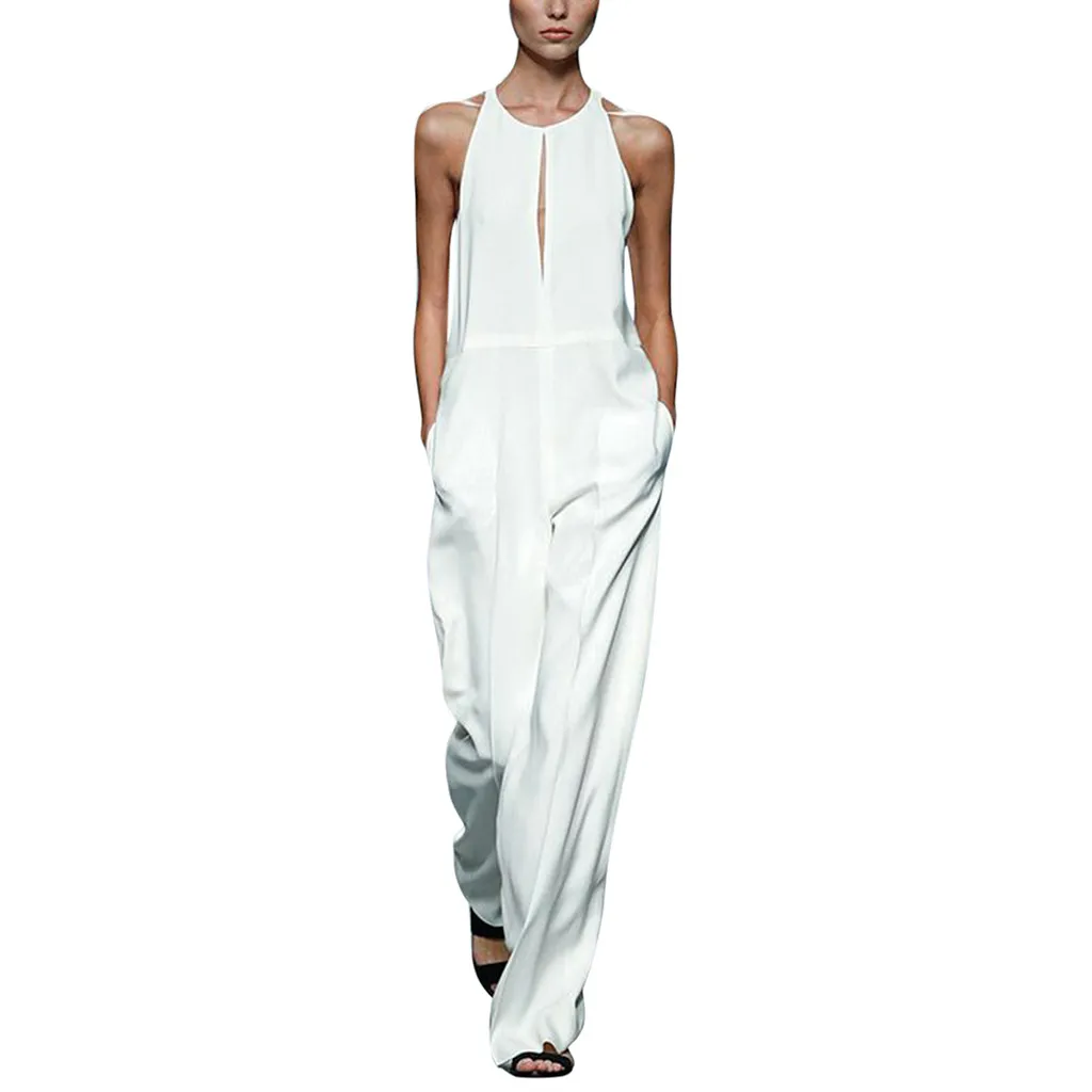 Модный женский комбинезон без рукавов с широкими штанинами из хлопка и льна