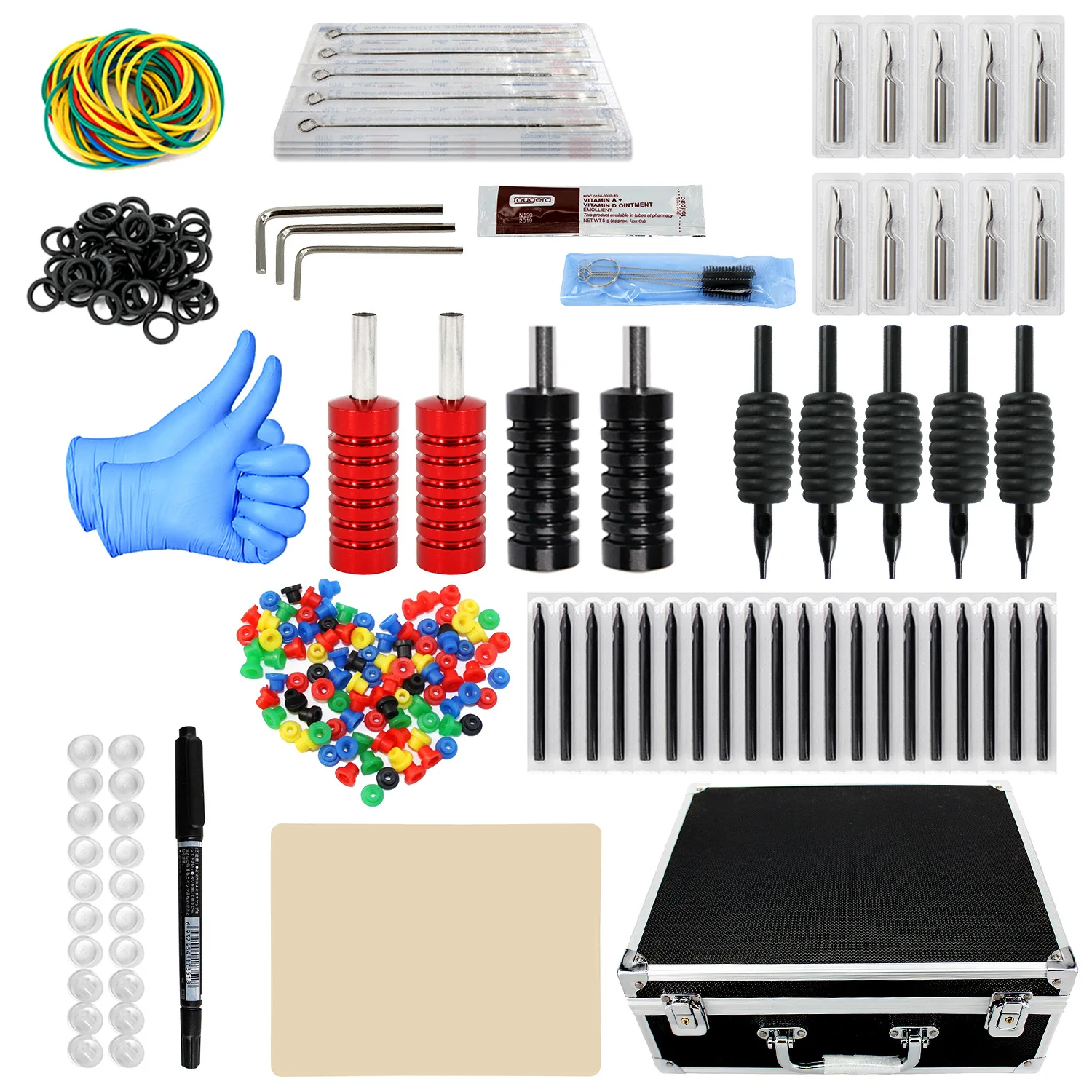 Катушка для шейдера X 2 шт Катушка машина для лайнера X 2 шт Источник питания для тату X 1 шт. Педаль из нержавеющей стали X 1 шт. Шнур катушки X 2 шт. Игла для тату X 50 шт. Алюминиевый захват X 4 шт. Пустая Татуировка pratice skin X 1 шт. Красочные резинки X 50 шт Набор ключей allen X 1 комплект Ручка для тату X 2 шт. Красочные люверсы X 50 шт Демпфирующее кольцо X 50 шт. Синие нитриловые перчатки х пара Длинные черные наконечники 5RT x 20 шт Набор кистей с наконечниками X 1 Набор Черная маркерная ручка X 1 шт. Средние крышки чернил с основанием х 20 шт Одноразовые тату-трубки 5RT x 5 шт Чехол для тату X 1 шт.