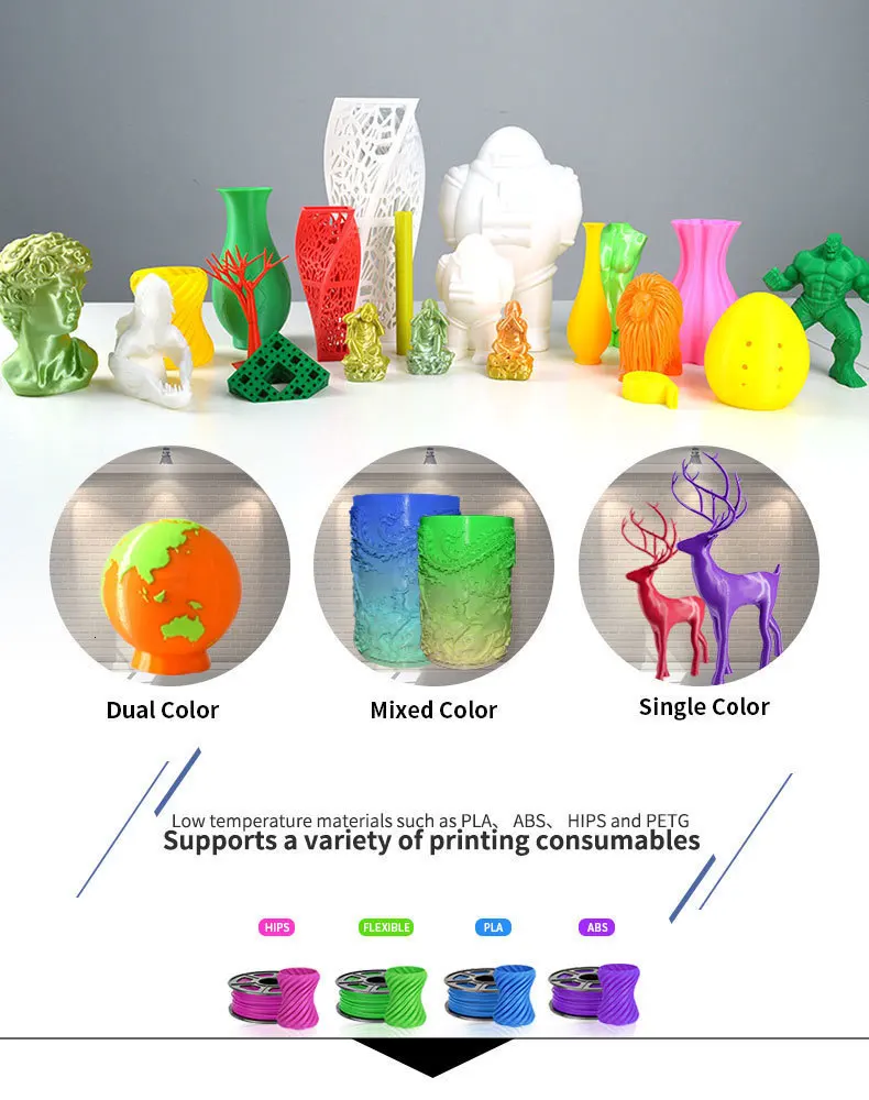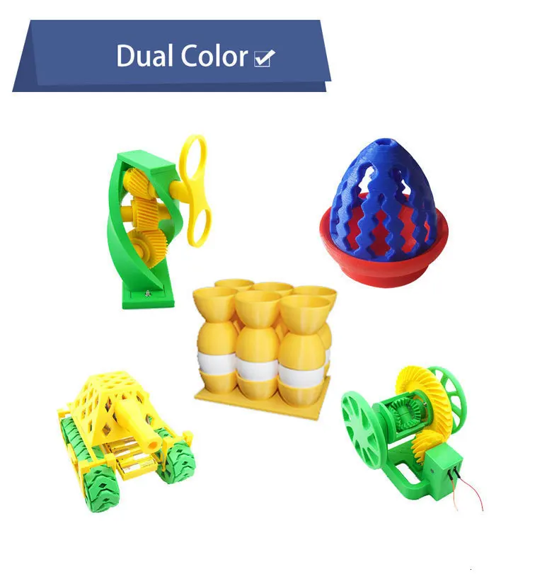 Двойной Цвет Экструдер:Он может создавать два цветных объекта или один цвет.Если yВы покупаете одну версию экструдера во-первых, вы можете легко обновить к двойным экструдерам или тройным экструдерам в будущем, (Нажмите, чтобы узнать больше).