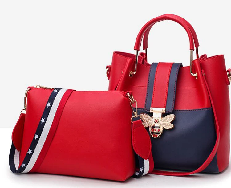 Wohlbege Женский Pu с одним плечом, сшитая пряжка в виде пчелы, металлический портативный большой объем, комплект из 2 предметов