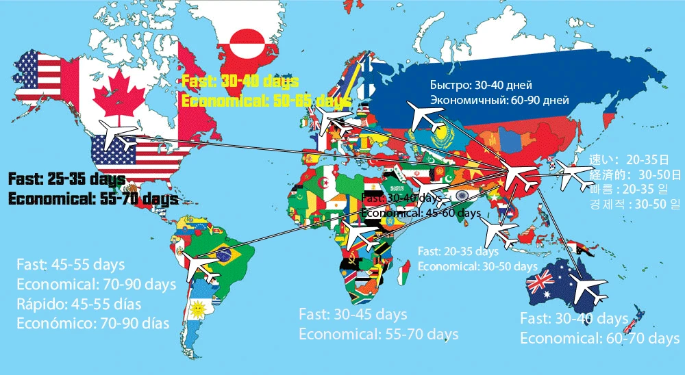 А. большинство посылок отправляются экономичным способом доставки. В зависимости от почтовой службы в вашей стране, это занимает около 40-90 дней. В некоторых странах даже требуется около 90 дней, таких как Россия, Украина, Перу, Мексика, африканские страны.
