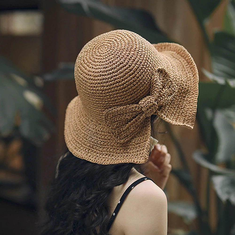 Модная шляпа от солнца, Женская пляжная соломенная шляпа-ведро с куполом, летняя пляжная шляпа с бантом в рыбацком стиле, складная шляпа от солнца, Повседневная Кепка Glris