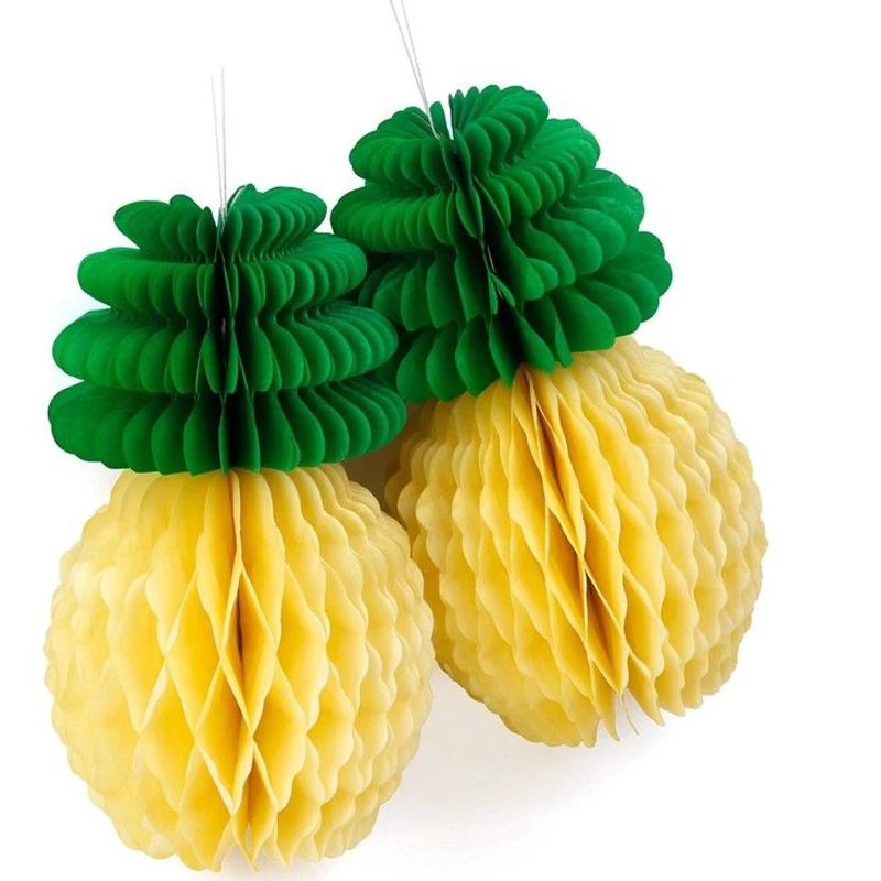 Feature: Package:1pc pineapple decorationBrand Name:FENGRISE Type:Event & Party Supplies Occasion:Party Decoration Material:tissue paper Event & Party Item Type:party&holiday Type:Other Festive & Party Supplies Color:As the picture describetion Measuring approx. 21cm high, 12cm diameter. Finish off your party table decorations with this 8 inch tall yellow and green tissue paper honeycomb pineapple centerpiece. Perfect for luaus and summer parties. Easy to assemble and reusable. Place a cluster of these cute Tissue Pineapple Decorations on a cake plate for an eye-catching centerpiece, or space them along the buffet table. You could hang your pineapples from string or cord, or open them only halfway and tape to a wall or window.