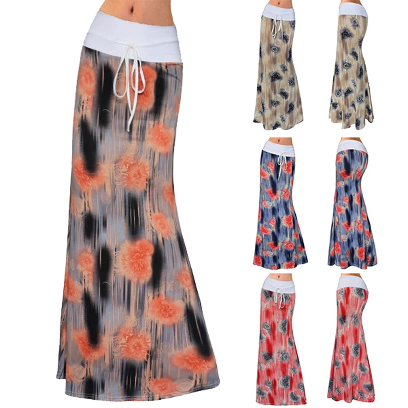 * Описание товара:Женская одежда, летняя мода, сексуальная тонкая юбка, высокая талия эластичная, цветочный принт, средней длины, плюс размер