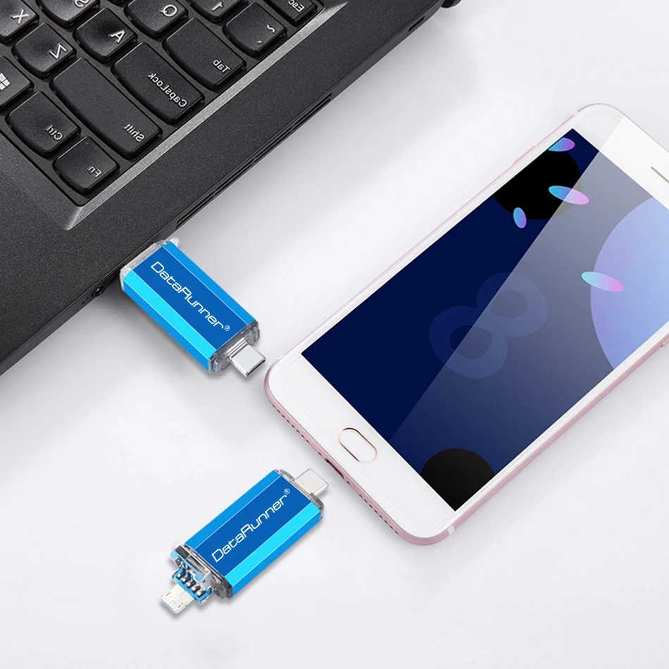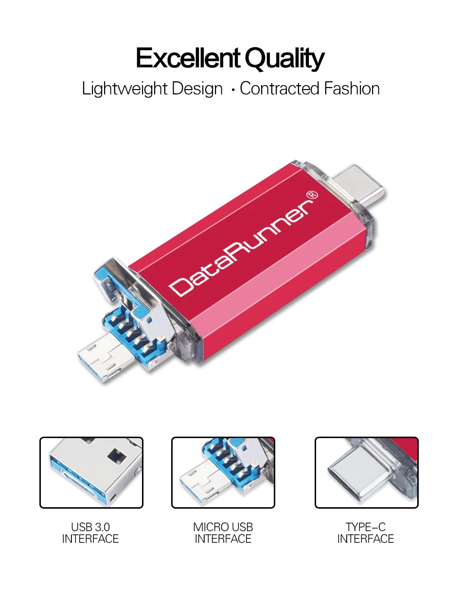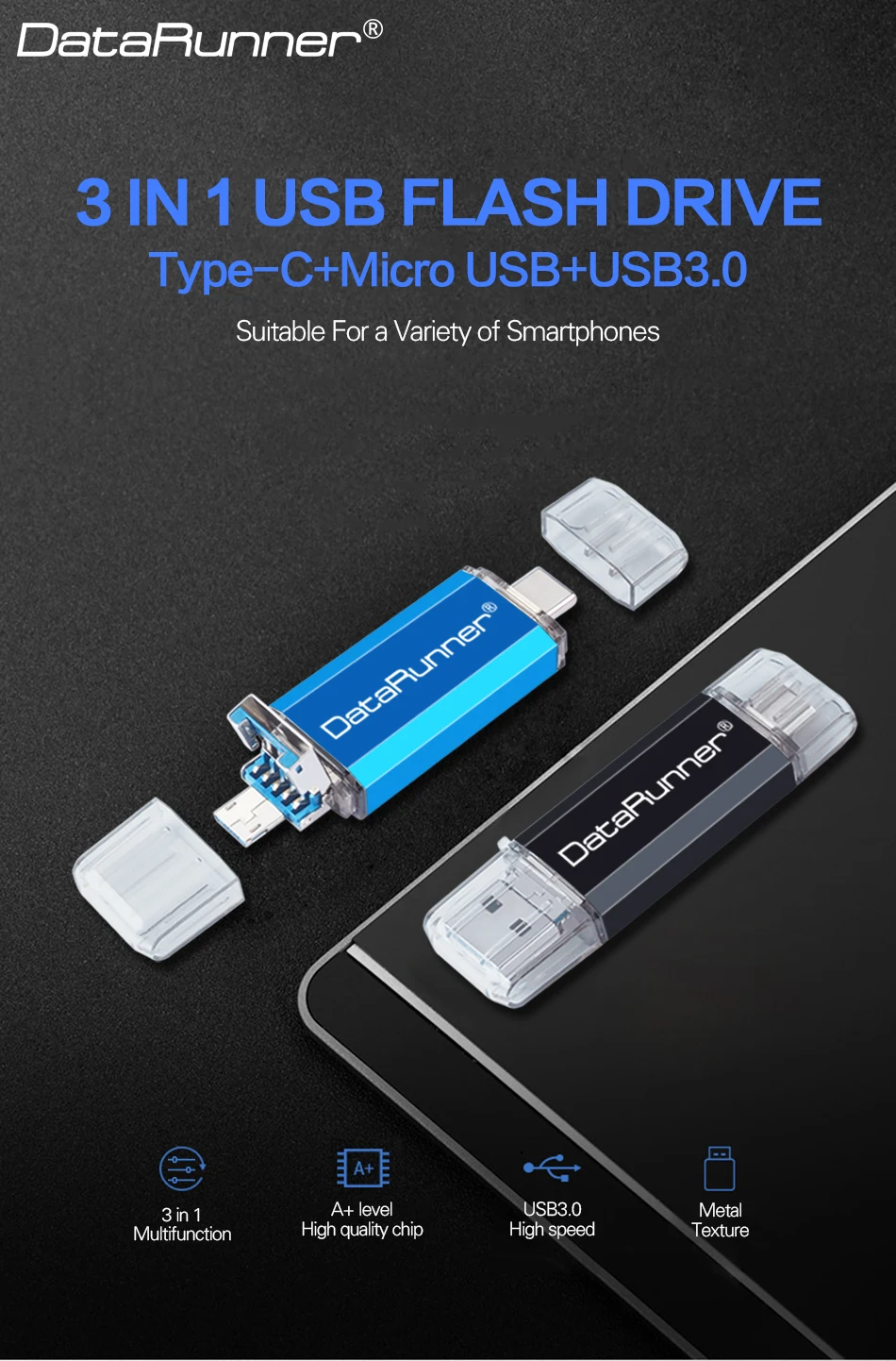 Оригинальный DataRunner OTG USB флеш-накопитель 3 в 1 USB3.0 & Type-C & Micro USB флеш-накопитель 16 ГБ 32 ГБ 64 Гб 128 ГБ 256 ГБ 512 ГБ Флешка флеш-накопитель