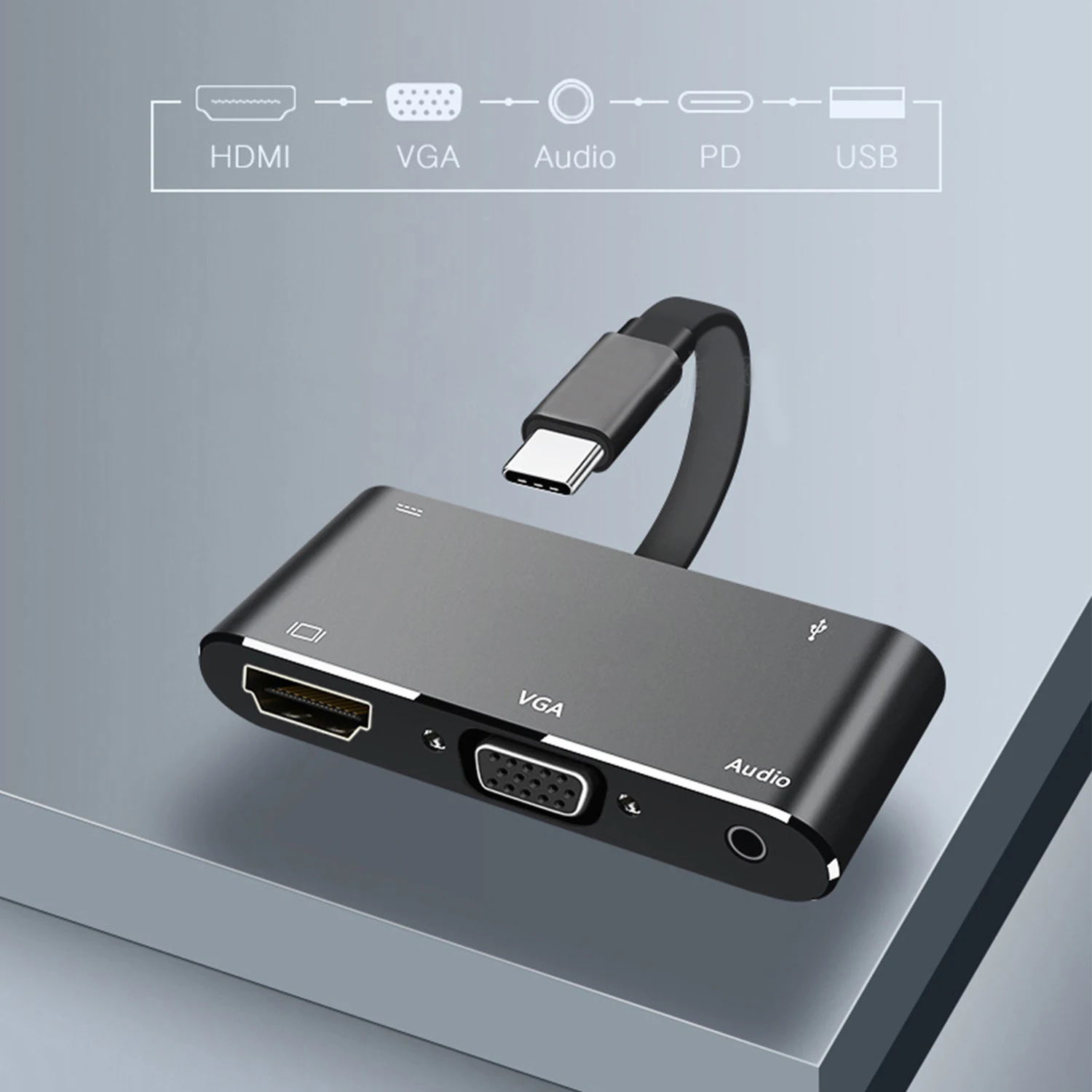 5 в 1 USB C доки, YMY легкий алюминиевый преобразователь типа C расходуется на 4K HDMI / VGA/аудио/USB3.0 / USB-C PD зарядка, совместимость с Macbook Pro iMac Chromebook Pixel Dell XPS