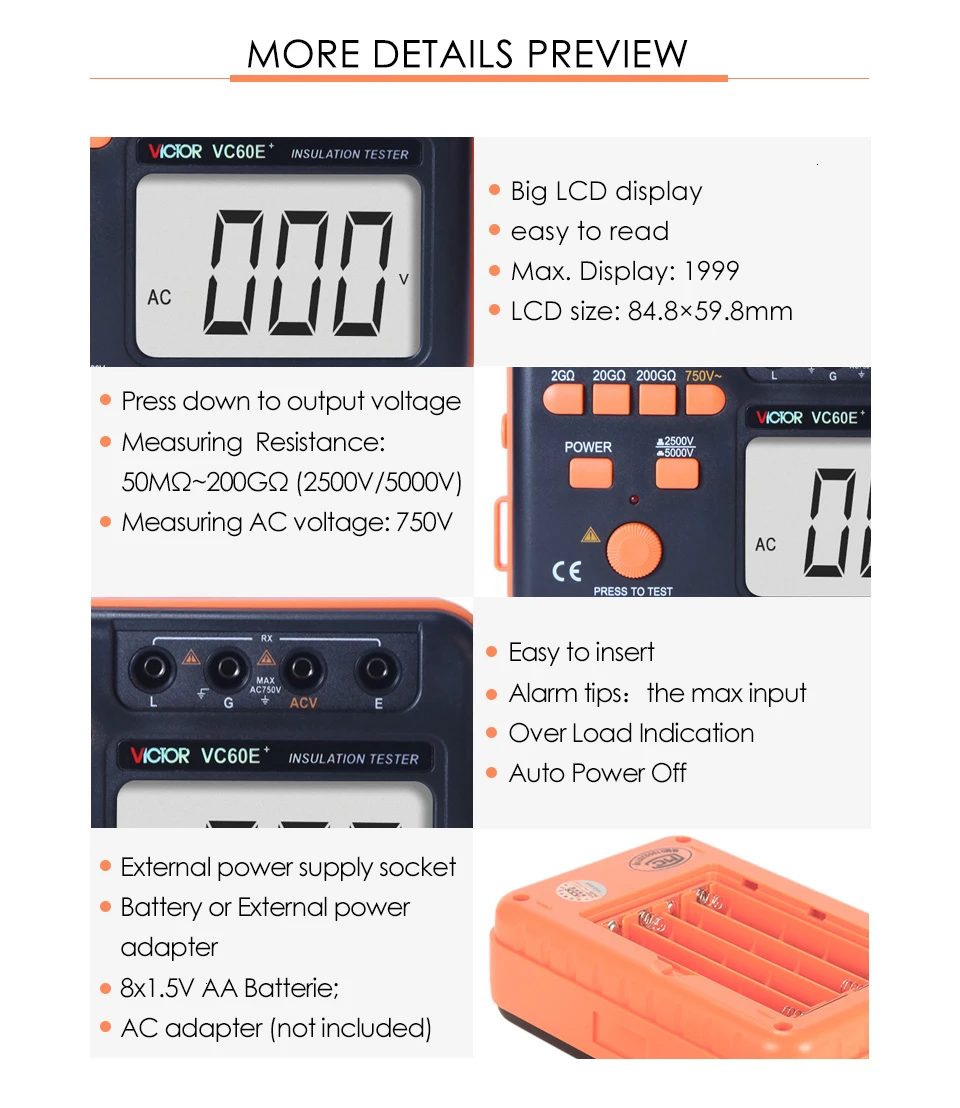 Идеальная защита от перегрузки, широко используется для проверки сопротивления изоляции, таких как электрическое, кабельное, электрическое и механическое оборудование, телекоммуникационное оборудование и электрические объекты.