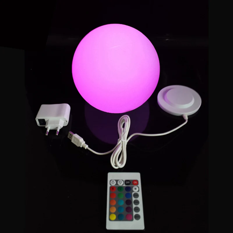 1. Полиэтиленовый пластик 2. Изменение цвета RGB, можно установить на один определенный цвет 3. С пультом дистанционного управления и сенсорным управлением 4. Перезаряжаемая литиевая батарея: 800 мАч DC: 5V1A 5. RGBW Количество светодиодов: 3 шт. 6. Время зарядки 3-5 часов может работать 8-10 часов 7. Водонепроницаемый IP68 8. Этот заказ предлагается диаметр светодиодного шара 15 см, Бесплатная доставка 1 шт. на заказ, если вам нужен другой размер, пожалуйста, подтвердите с нами снова. 9. Этот заказ включает светодиодный шар, индуктивное зарядное устройство, руководство пользователя на английском языке, дистанционное управление.