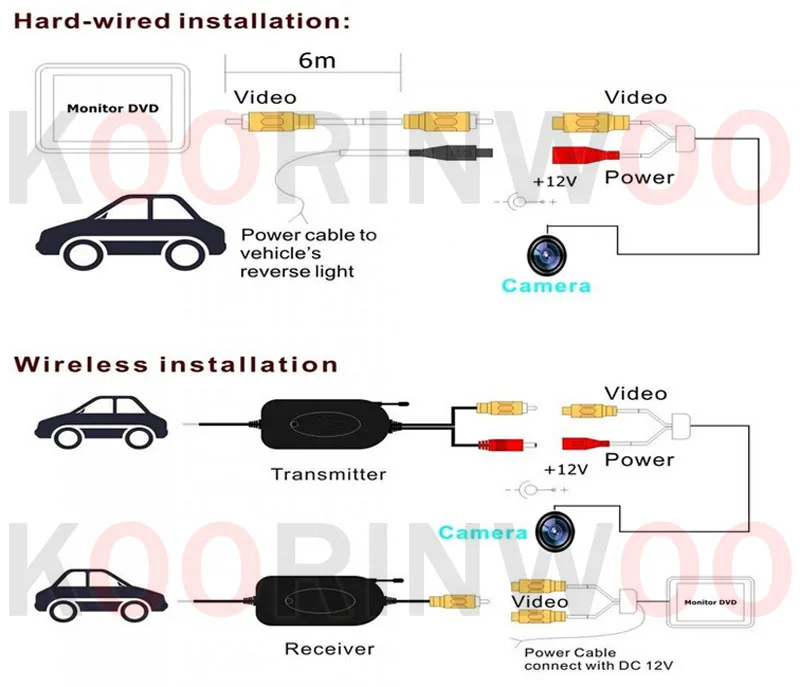 С 2 входными портами видео, белый видеокабель подключается к автомобильной камере заднего вида, желтый подключается к DVD или VCD.