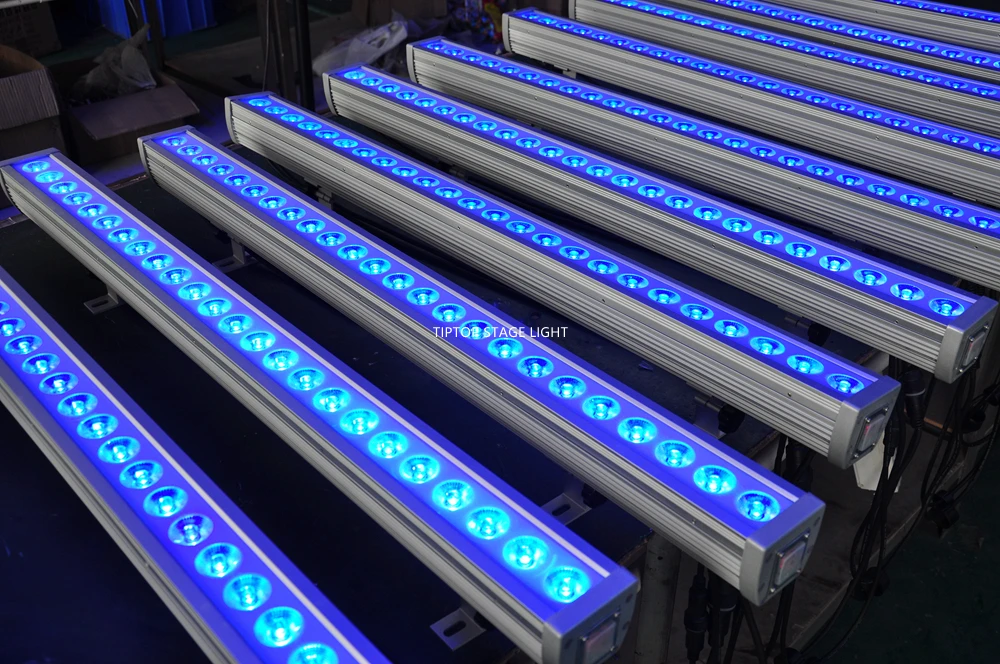 Напряжение: AC90-260V.50-60hz Потребляемая мощность: 100 Вт Количество светодиодов: 24 шт. 4 Вт светодиодные лампы Цветовое излучение: RGBW 4in1 смешивание цветов DMX каналы: 4/8 каналов Угол Линзы: 25 градусов (объектив 45 градусов является необязательным. Цена такая же) Использование: открытый (водонепроницаемый тип) Функции: DMX. Встроенная программа. Автозапуск. Срок службы светодиода: 100000 часов Сертификация: CE/ROHS Разъем: вход/выход, DMX вход/выход Материалы корпуса: алюминиевый чехол Размер светильника: Длина: 100 см Ширина: 9 см Высота: 12 см Способ упаковки: 8 в 1 чехол для полета с колесами Вес упаковки: 65 кг Упаковочный лист для каждого блока: 1 х светодиодный настенный светильник 1 Руководство пользователя * Мы будем оснащены водонепроницаемым кабелем питания и кабелем DMX для каждого заказа.
