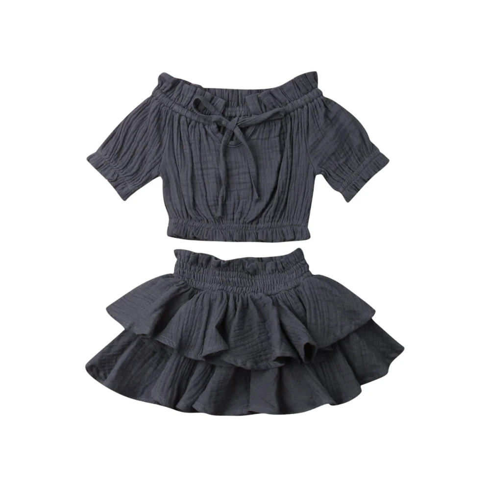 100% новый и высокое качество Модные детские комплекты одежды из 2 предметов для маленьких девочек! Модный дизайн; Милая одежда для дома Размеры: 70, 80, 90, 100 110 Цвет: как на картинке Материал: 100% хлопок Package Icluded: 1x Tops&1x Dress Size Chart: