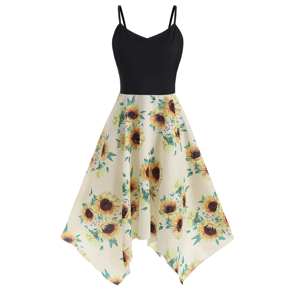 Женское платье, большие размеры, S-5XL, для женщин, с принтом подсолнуха, асимметричные Топики, платье с платком, летнее платье, женский сарафан, vestidos
