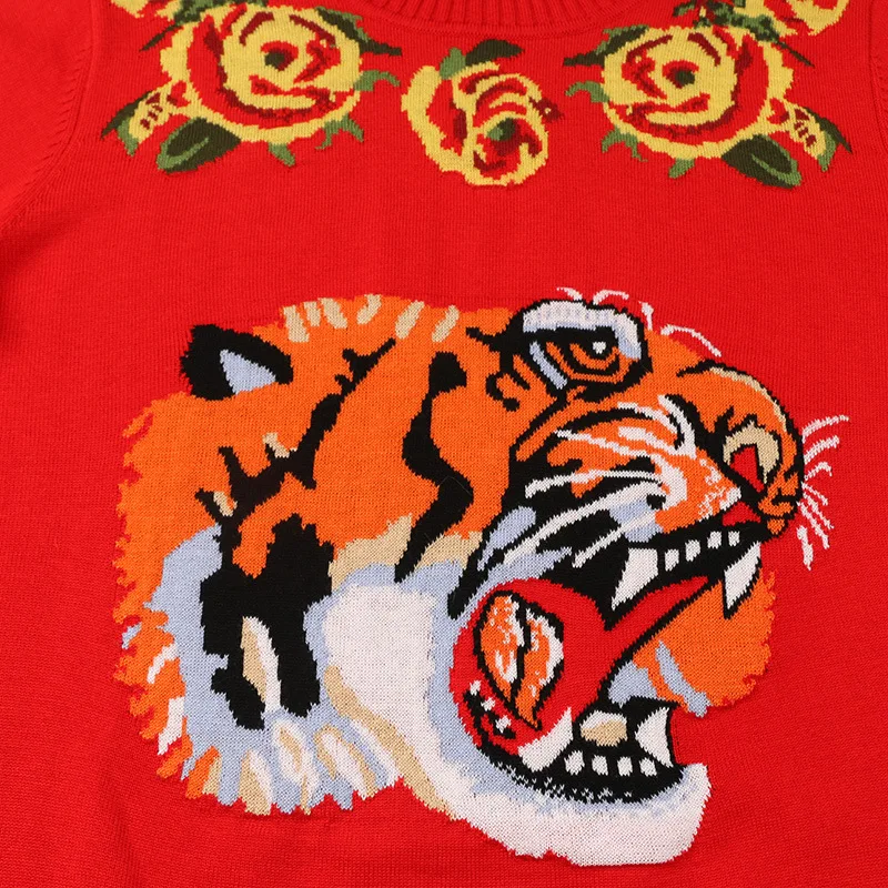 Pull femme Новая мода Винтаж голова тигра жаккард с цветами зимний Повседневный шерстяной джемпер женский пуловер вязаный свитер