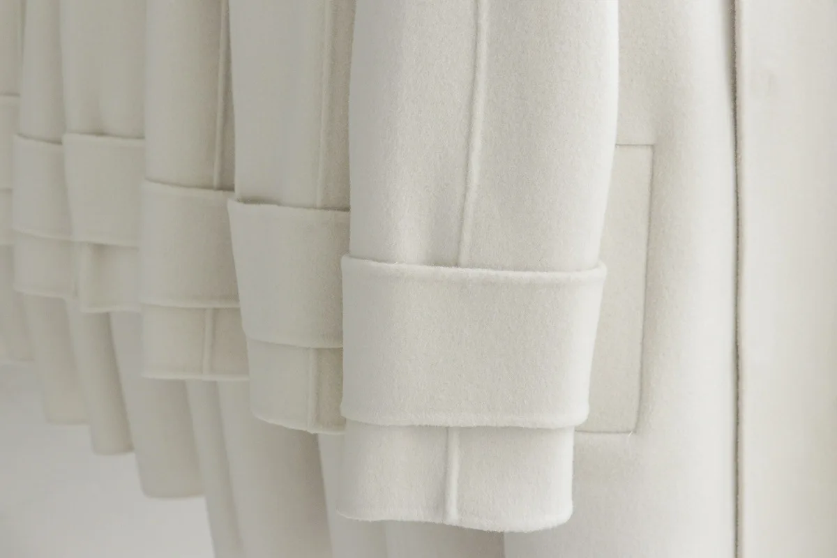 Женское приталенное шерстяное пальто элегантное офисное длинное на пуговицах с