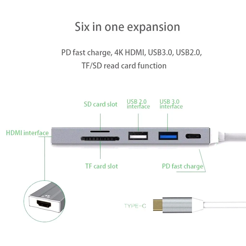 6 в 1 концентратор USB Type C Hdmi 4 K USB C концентратор для Gigabit Ethernet Rj45 Lan адаптер