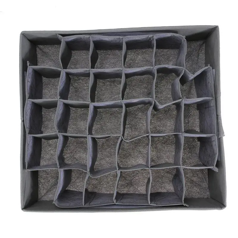 Особенности: Изготовлен из нетканого материала, прочный Когда не используется, можно сложить 30 отдельных небольших решетчатых конструкций Для Хранения нижнего белья, носков, легко найти то, что вы хотите, экономьте ваше время. Характеристики: Материал: Нетканая ткань + бамбуковое древесное волокно Размеры: 34x32x1 0 см/13,39x12,6x3,94 "(Д x Ш x В) Вес нетто: 200 г